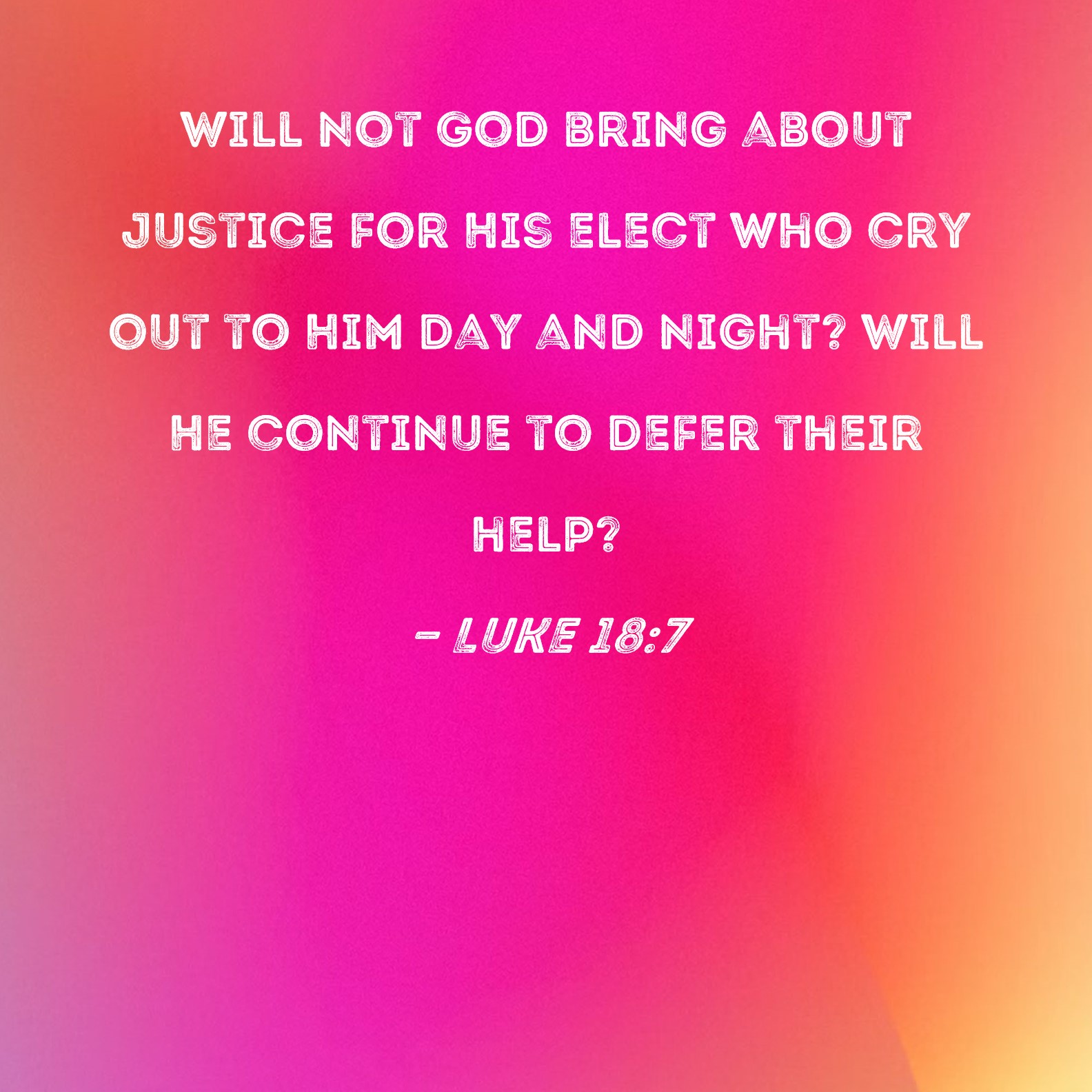 Luke 18:7 Will not God bring about justice for His elect who cry out to Him day and night? Will He continue to defer their help?
