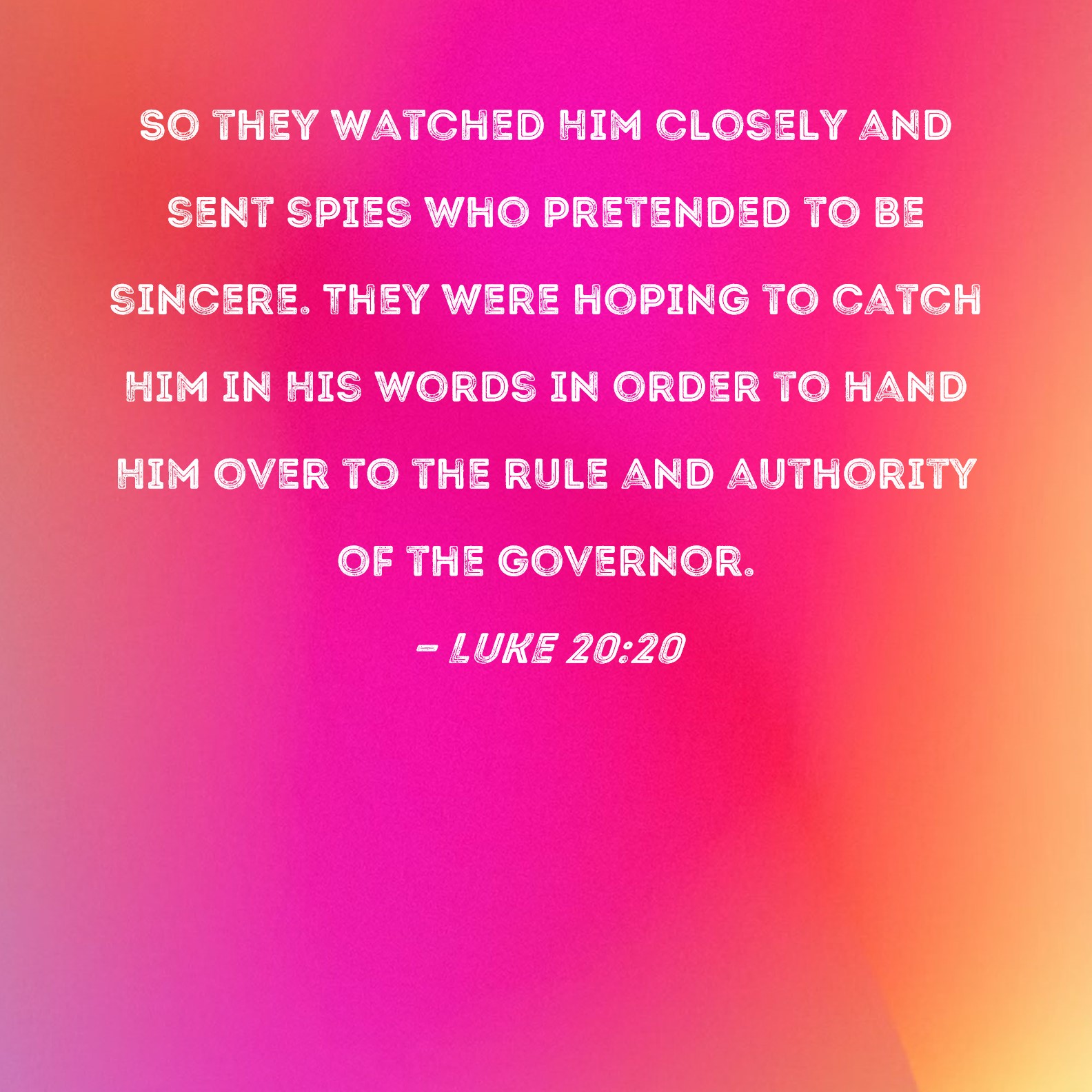 Luke 20:20 So they watched Him closely and sent spies who pretended to be sincere. They were hoping to catch Him in His words in order to hand Him over to the rule and authority of the governor.