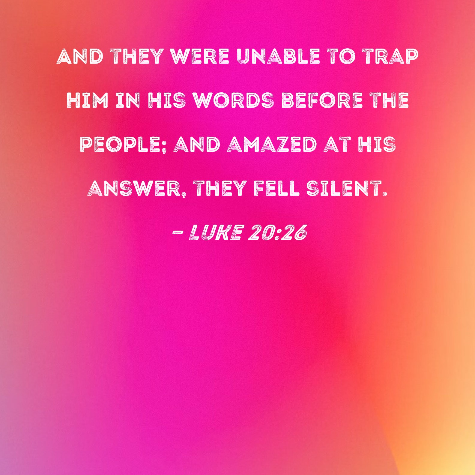 Luke 20:26 And they were unable to trap Him in His words before the people; and amazed at His answer, they fell silent.