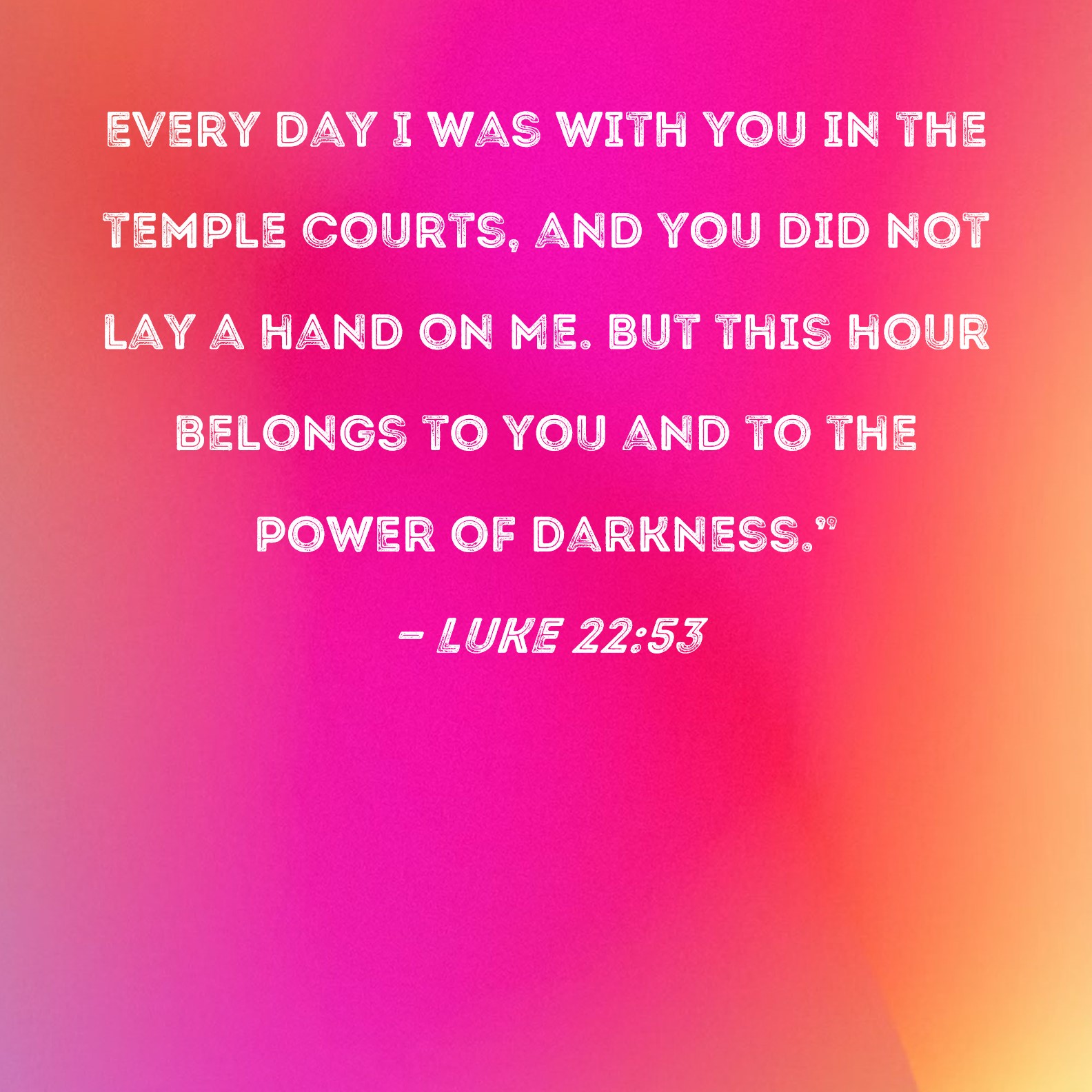 Luke 22:53 Every day I was with you in the temple courts, and you did not lay a hand on Me. But this hour belongs to you and to the power of darkness."