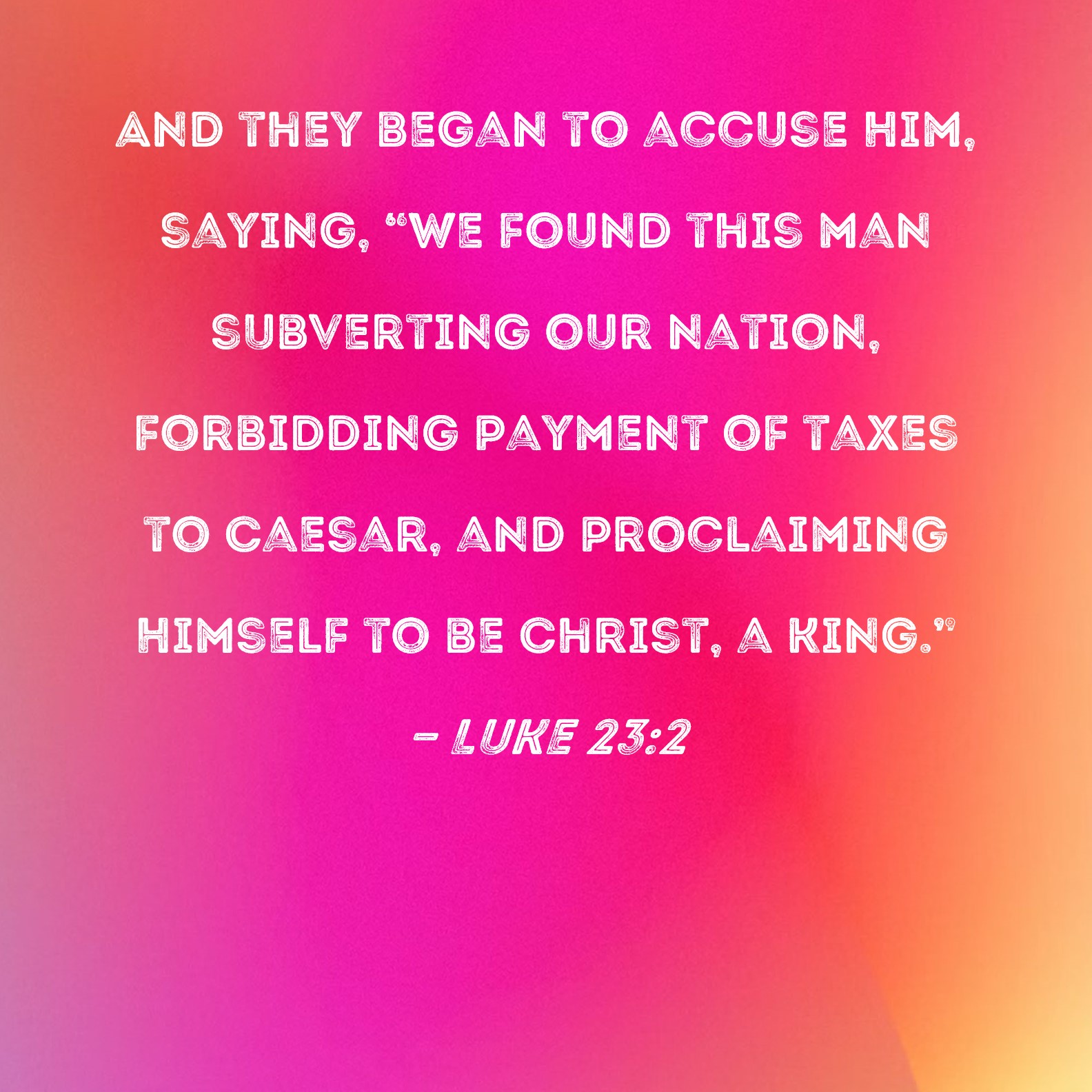 Luke 23:2 And they began to accuse Him, saying, "We found this man subverting our nation, forbidding payment of taxes to Caesar, and proclaiming Himself to be Christ, a King."