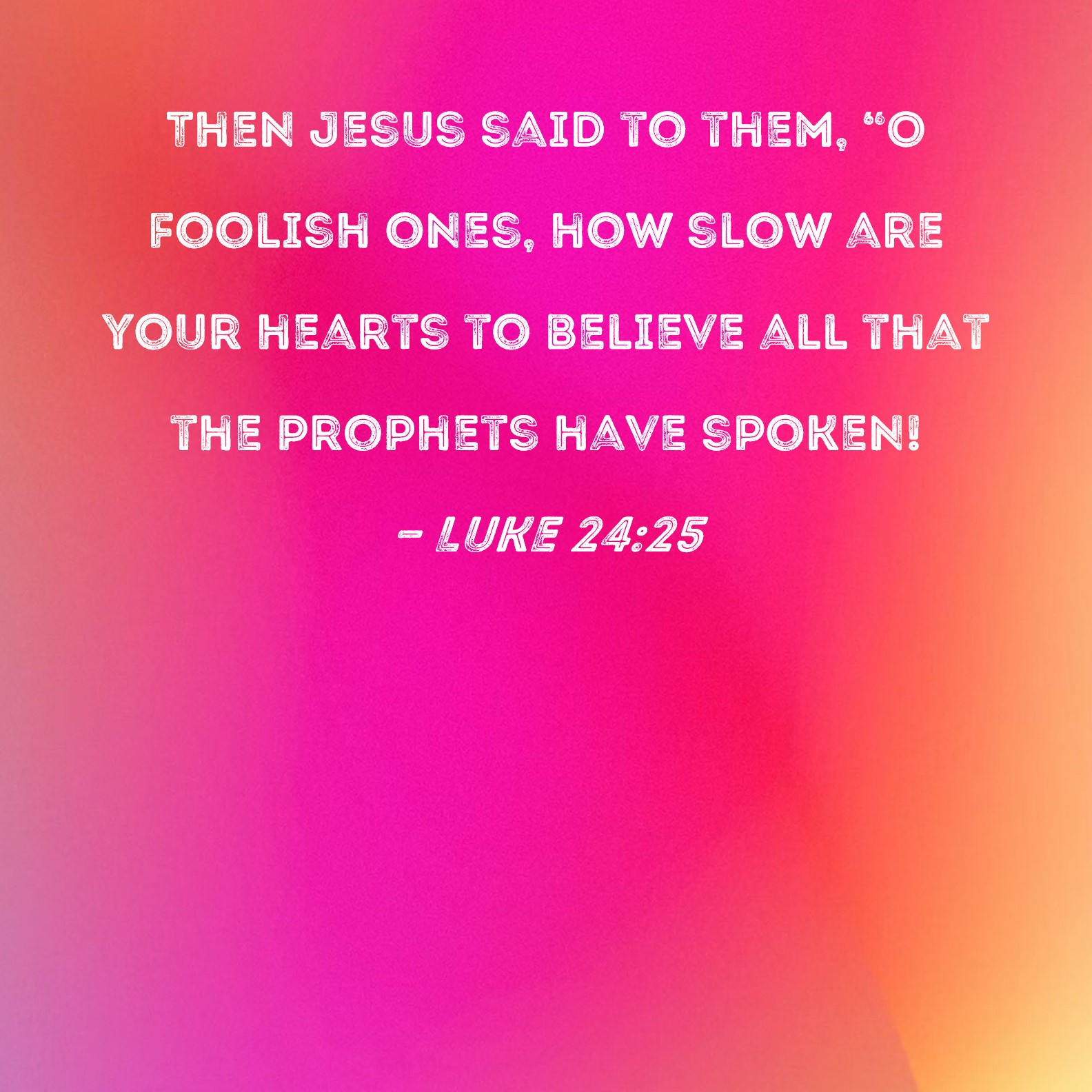 Luke 24:25 Then Jesus said to them, "O foolish ones, how slow are your hearts to believe all that the prophets have spoken!
