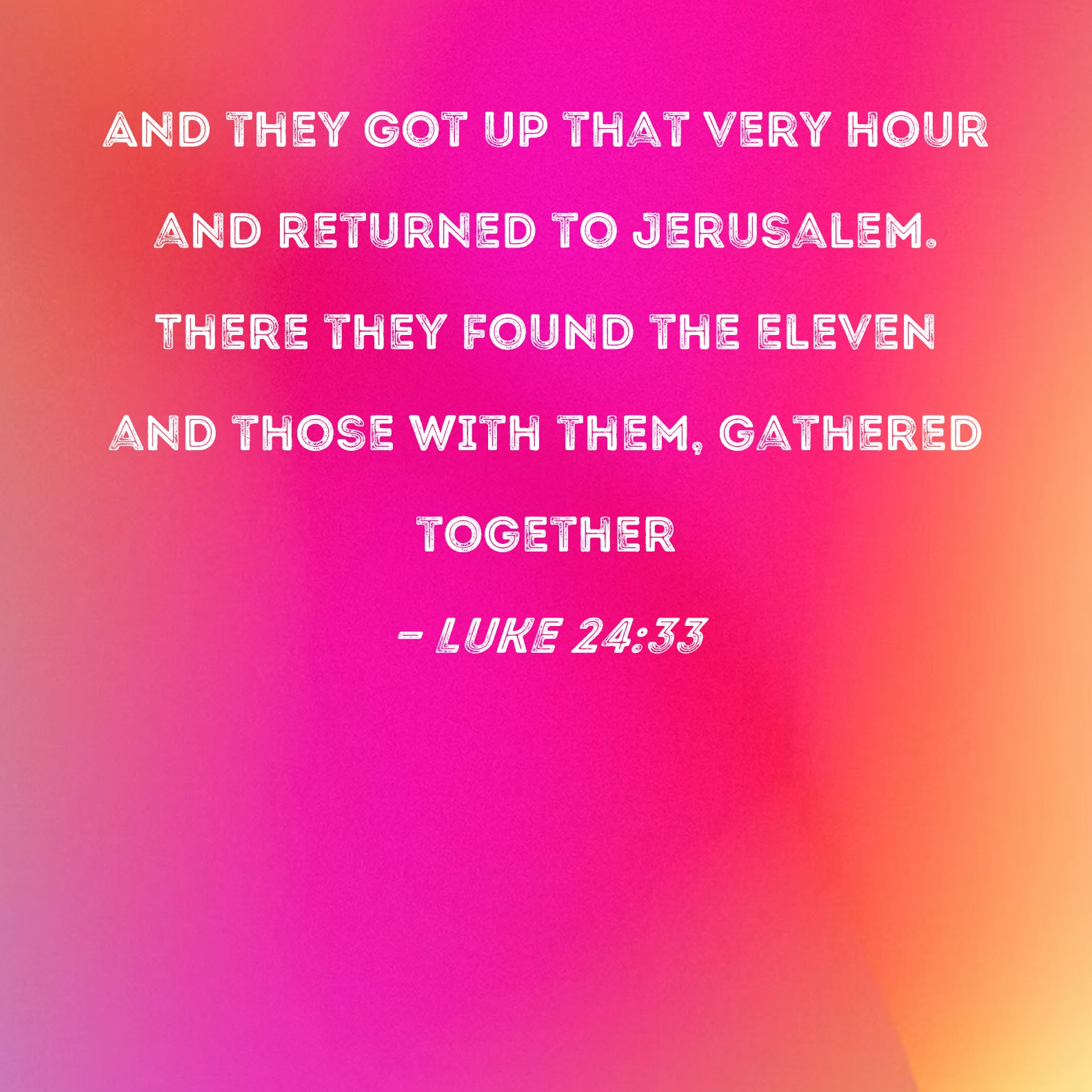 Luke 24:33 And they got up that very hour and returned to Jerusalem. There they found the Eleven and those with them, gathered together