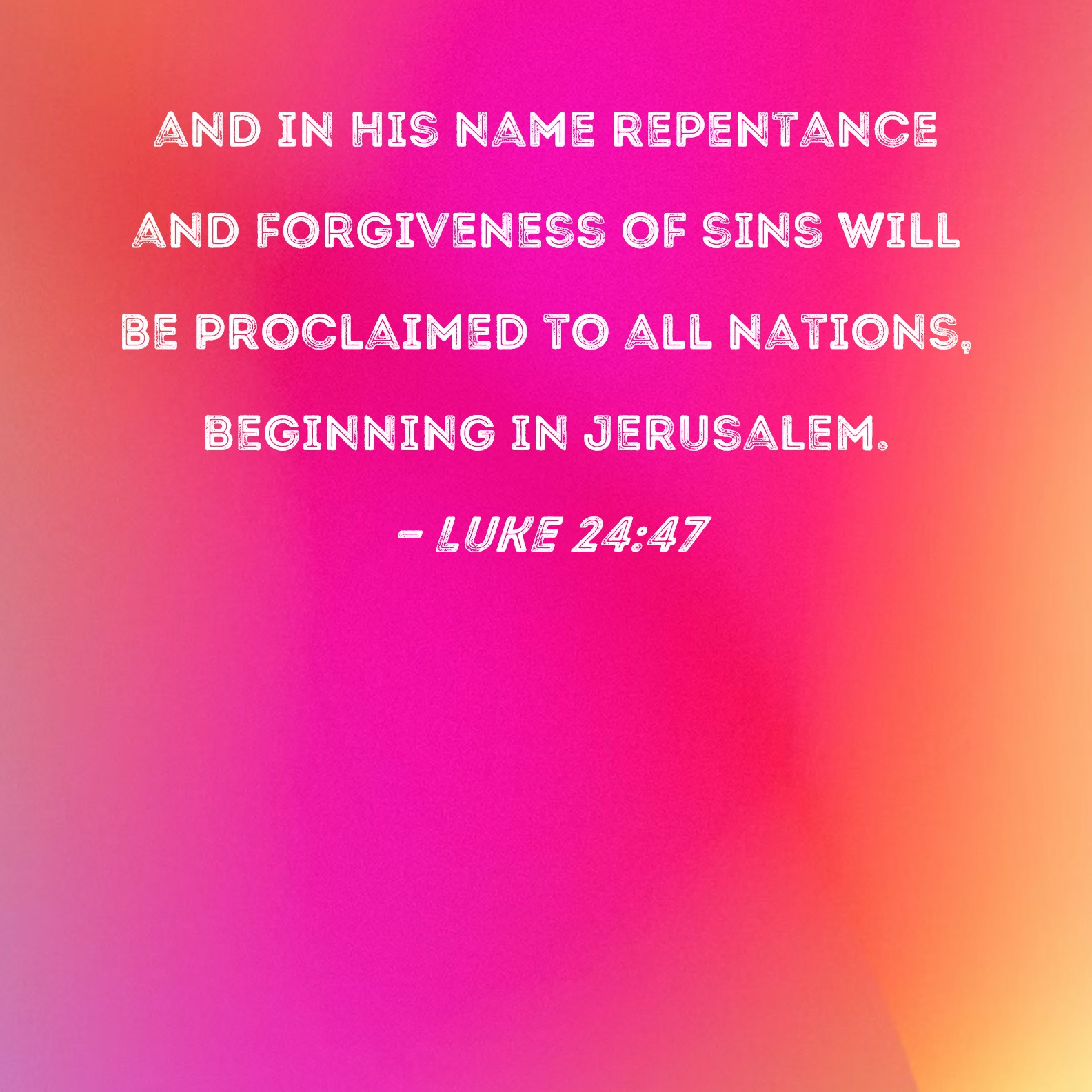 Luke 24:47 and in His name repentance and forgiveness of sins will be proclaimed to all nations, beginning in Jerusalem.