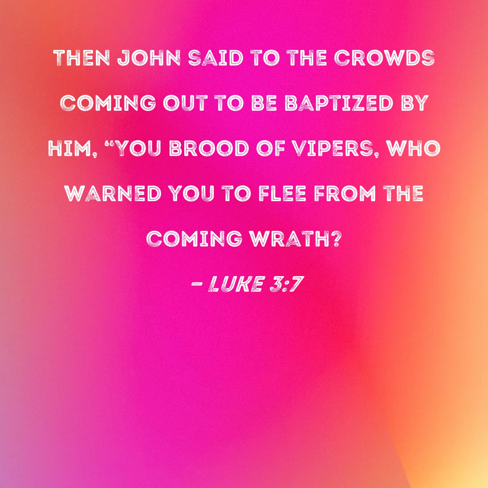 Luke 3:7 Then John said to the crowds coming out to be baptized by him, "You brood of vipers, who warned you to flee from the coming wrath?