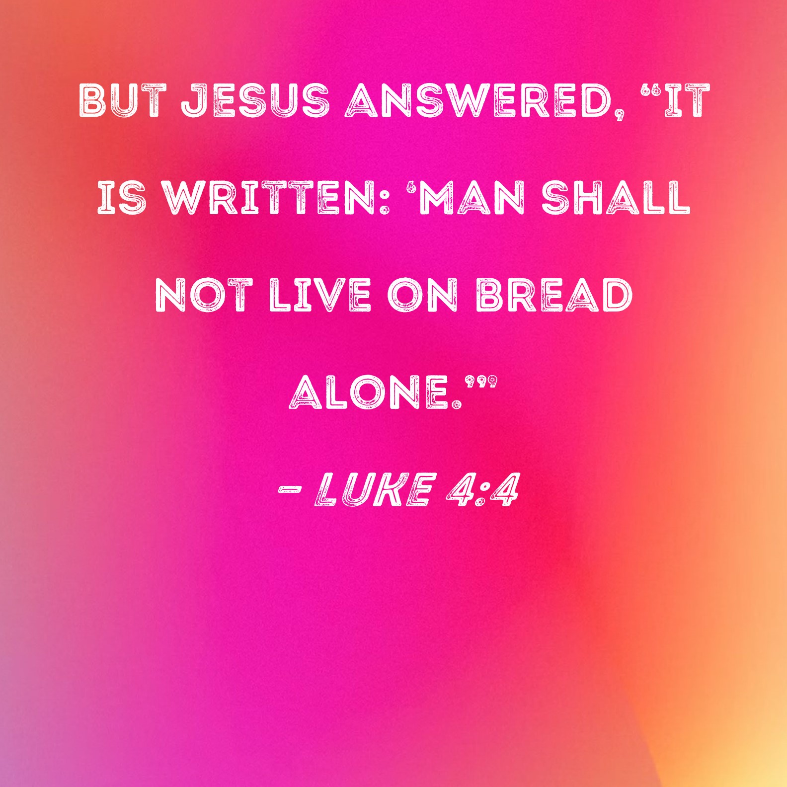 Luke 4:4 But Jesus answered, "It is written: 'Man shall not live on bread alone.'"