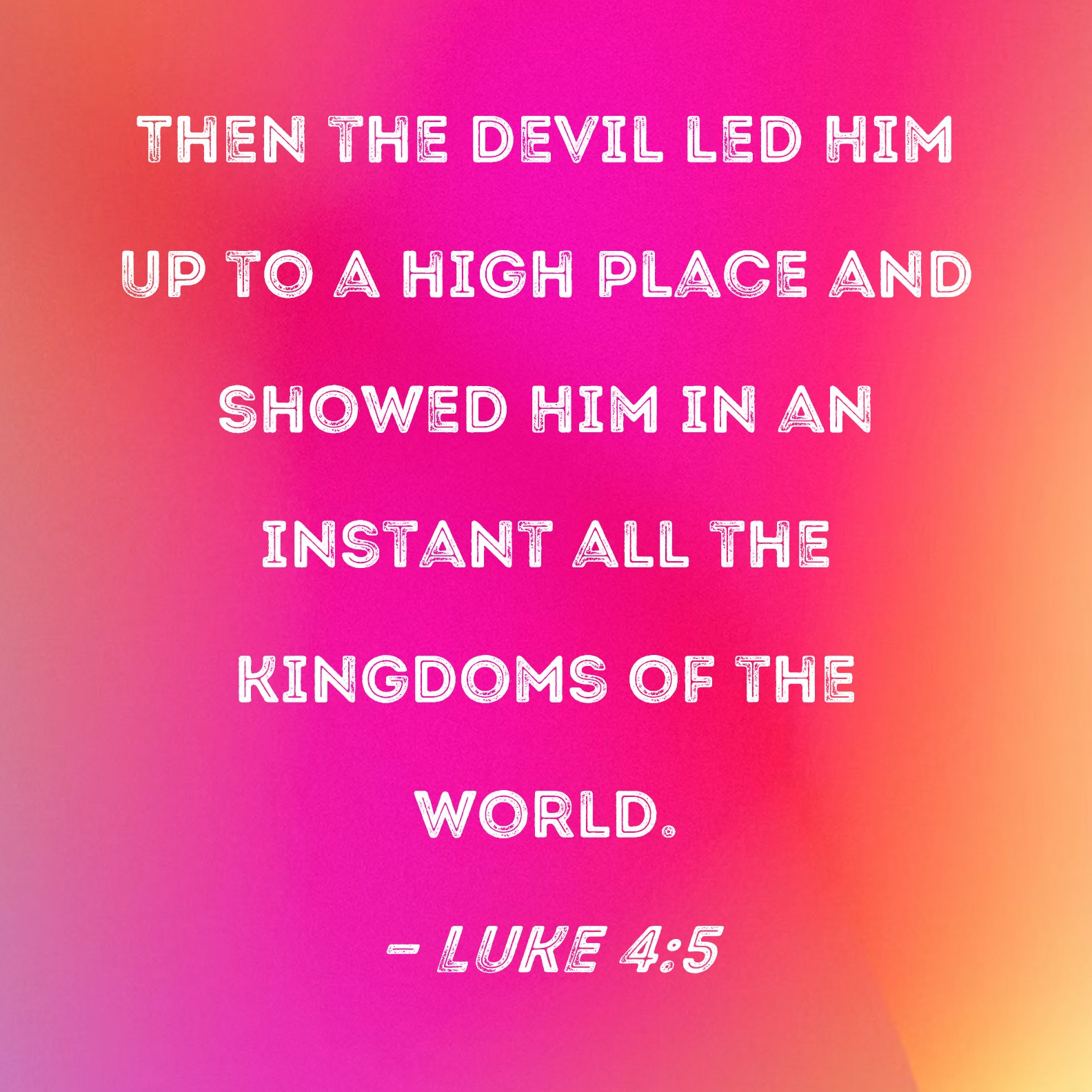 Luke 4:5 Then the devil led Him up to a high place and showed Him in an instant all the kingdoms of the world.