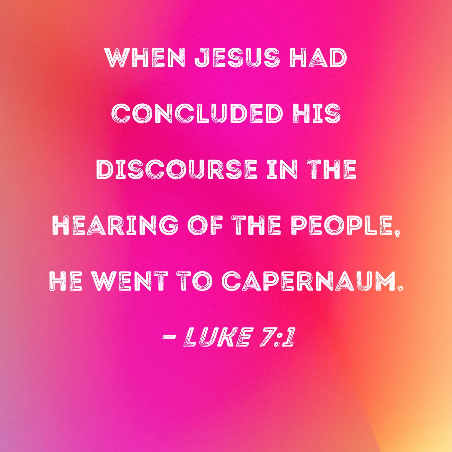 Luke 7:1 When Jesus had concluded His discourse in the hearing of the people, He went to Capernaum.