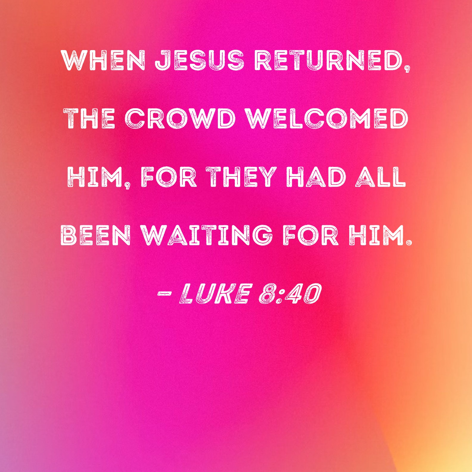 Luke 8:40 When Jesus returned, the crowd welcomed Him, for they had all been waiting for Him.