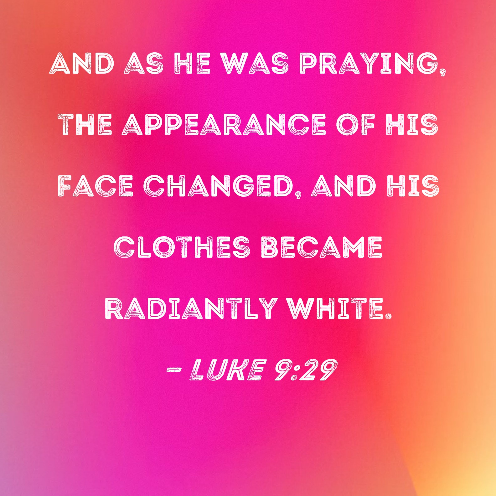 Luke 9:29 And as He was praying, the appearance of His face changed, and His clothes became radiantly white.
