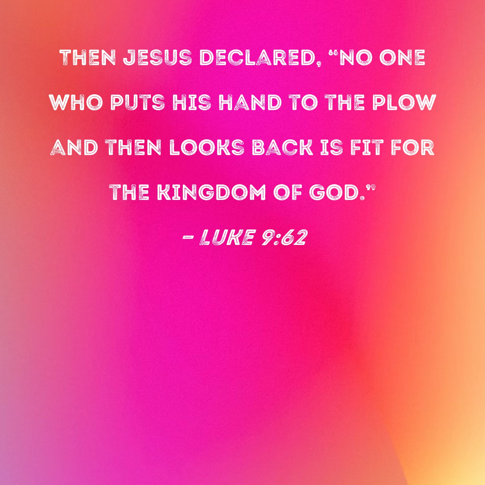 Luke 9:62 Then Jesus declared, "No one who puts his hand to the plow and then looks back is fit for the kingdom of God."