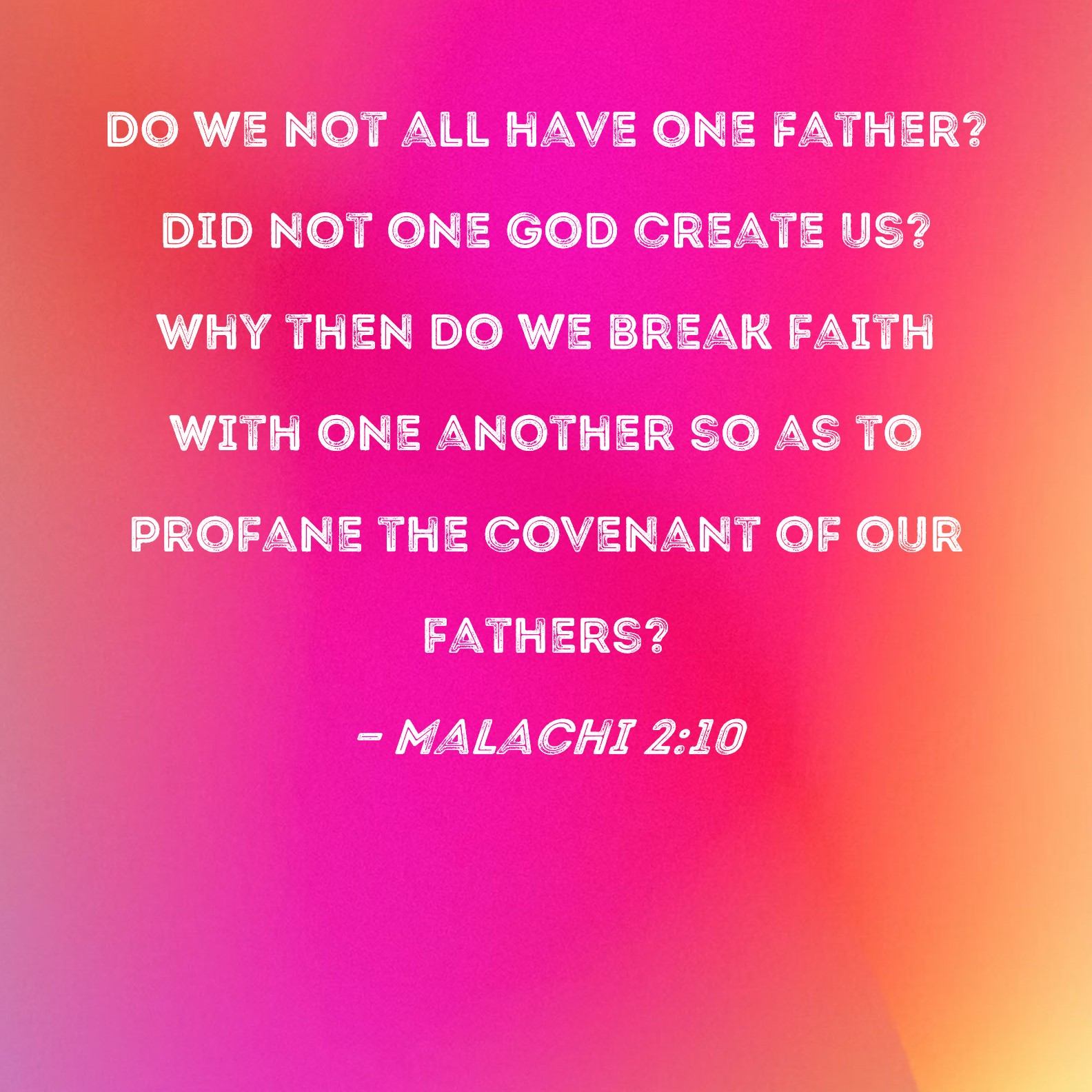 Malachi 2:10 Do we not all have one Father? Did not one God create us? Why then do we break faith with one another so as to profane the covenant of our fathers?