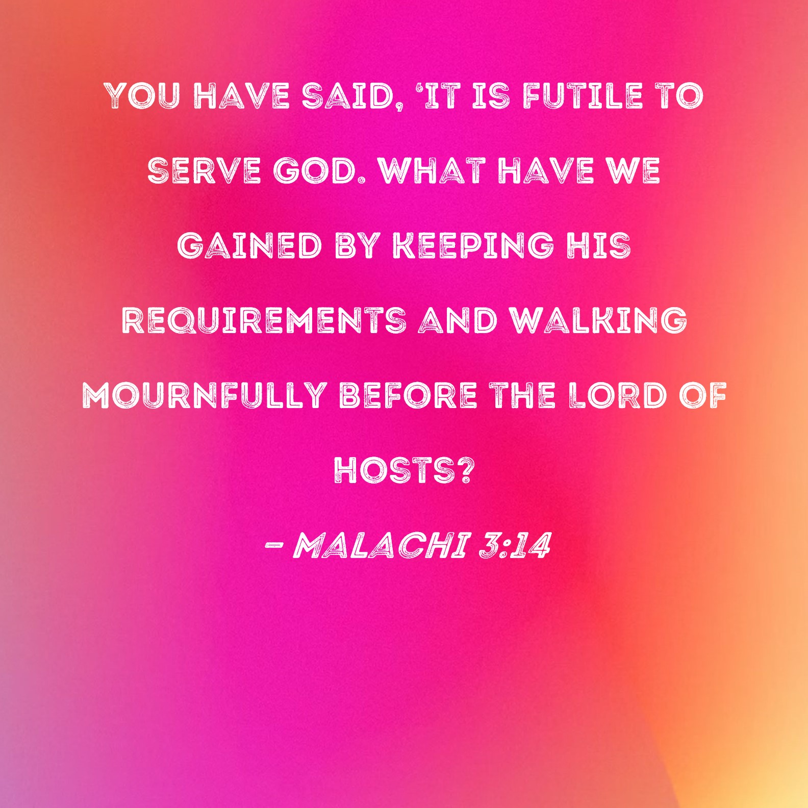 Malachi 3:14 You have said, 'It is futile to serve God. What have we gained by keeping His requirements and walking mournfully before the LORD of Hosts?