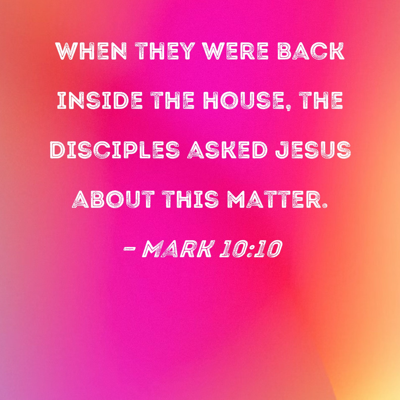 Mark 10:10 When they were back inside the house, the disciples asked Jesus about this matter.