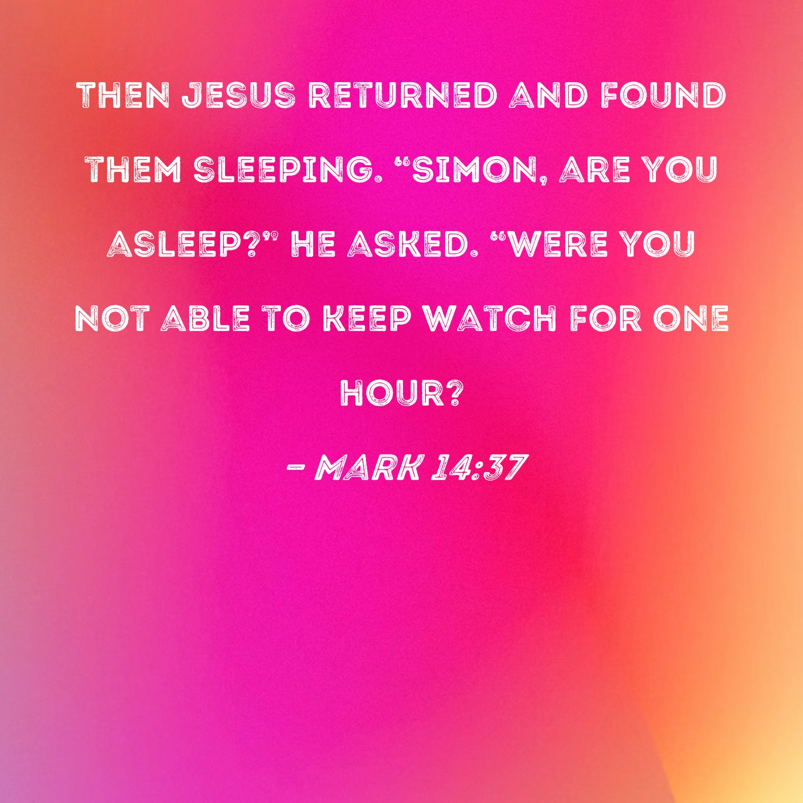 Mark 14:37 Then Jesus returned and found them sleeping. "Simon, are you asleep?" He asked. "Were you not able to keep watch for one hour?