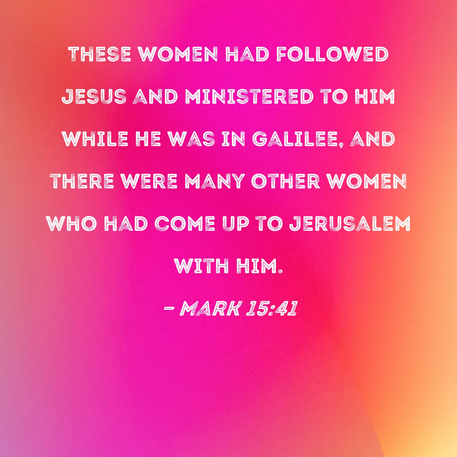 Mark 15:41 These women had followed Jesus and ministered to Him while He was in Galilee, and there were many other women who had come up to Jerusalem with Him.