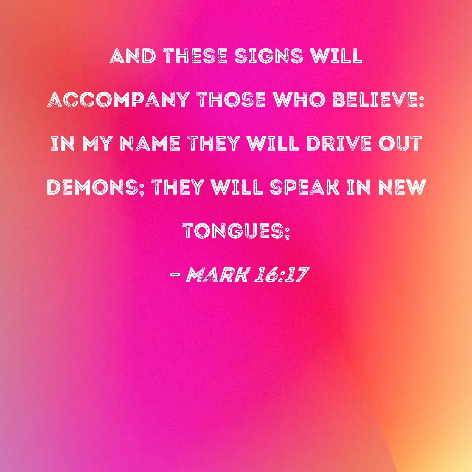 And these signs will accompany those who believe: In My name they will drive out demons; they will speak in new tongues;