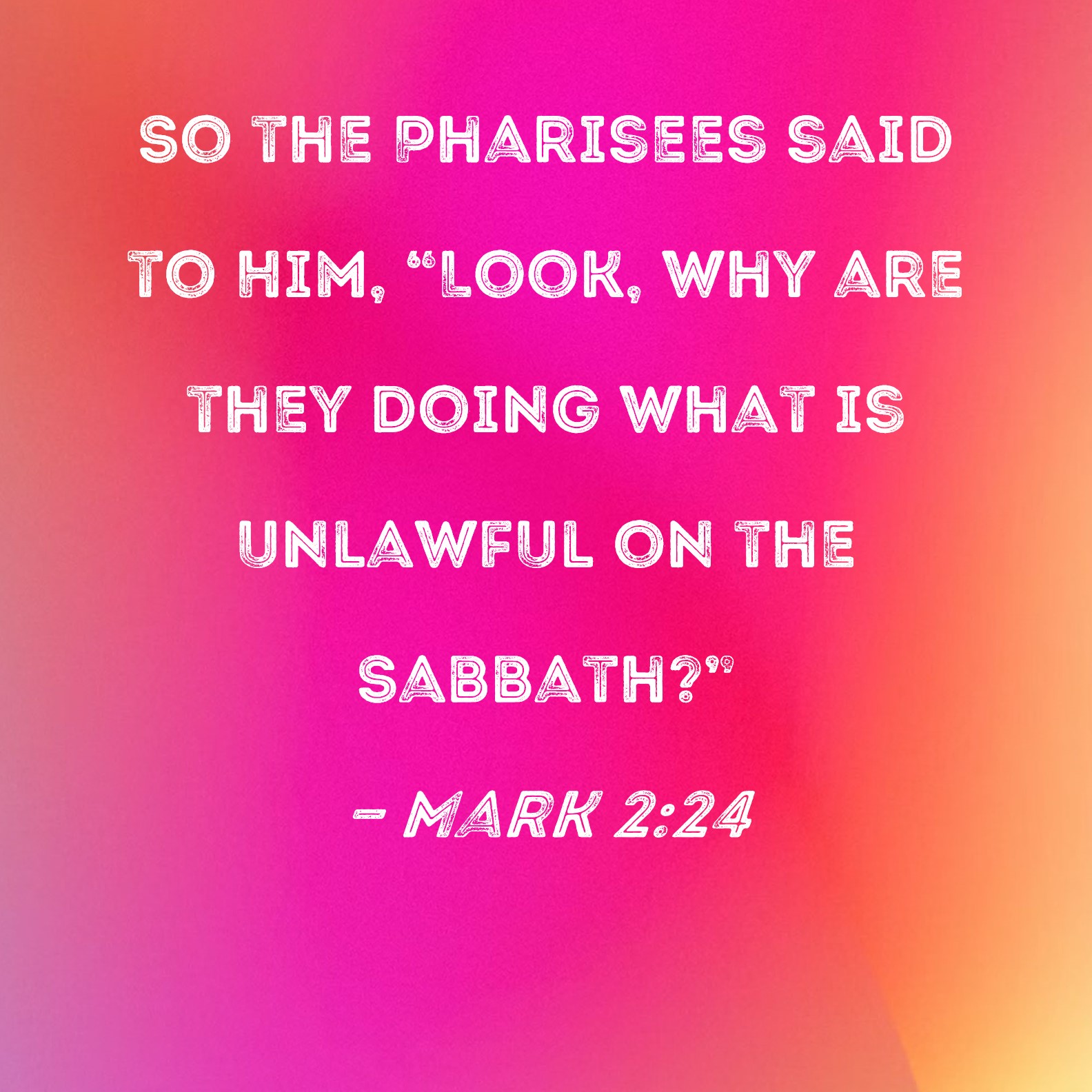 Mark 2:24 So the Pharisees said to Him, "Look, why are they doing what is unlawful on the Sabbath?"