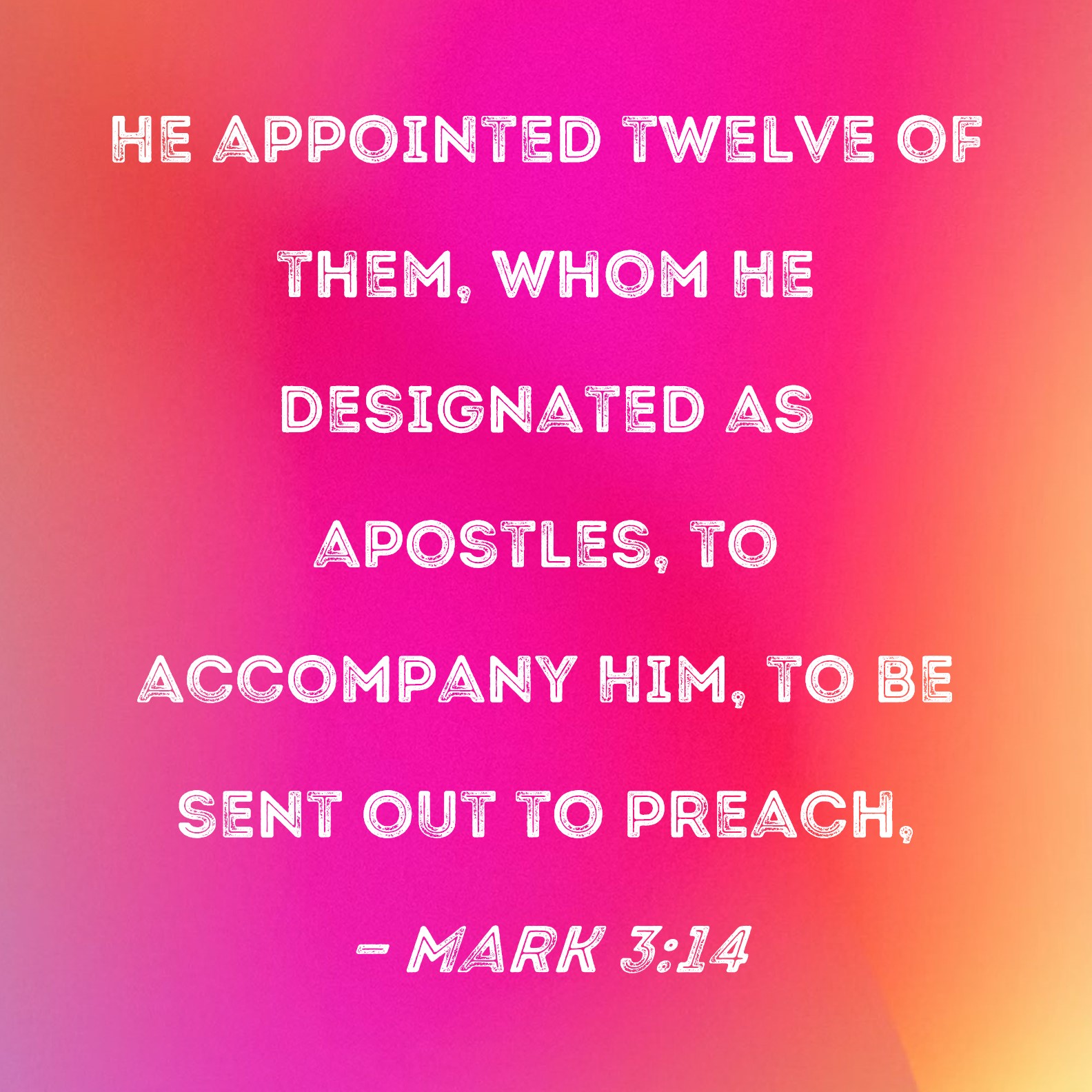 Mark 3:14 He appointed twelve of them, whom He designated as apostles, to accompany Him, to be sent out to preach,