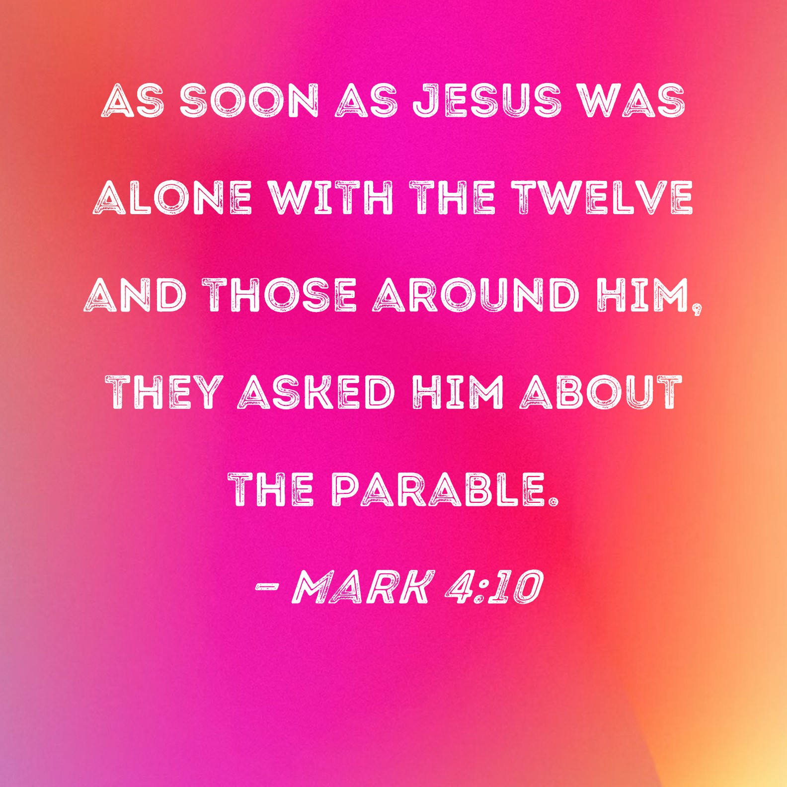 Mark 4:10 As soon as Jesus was alone with the Twelve and those around Him, they asked Him about the parable.
