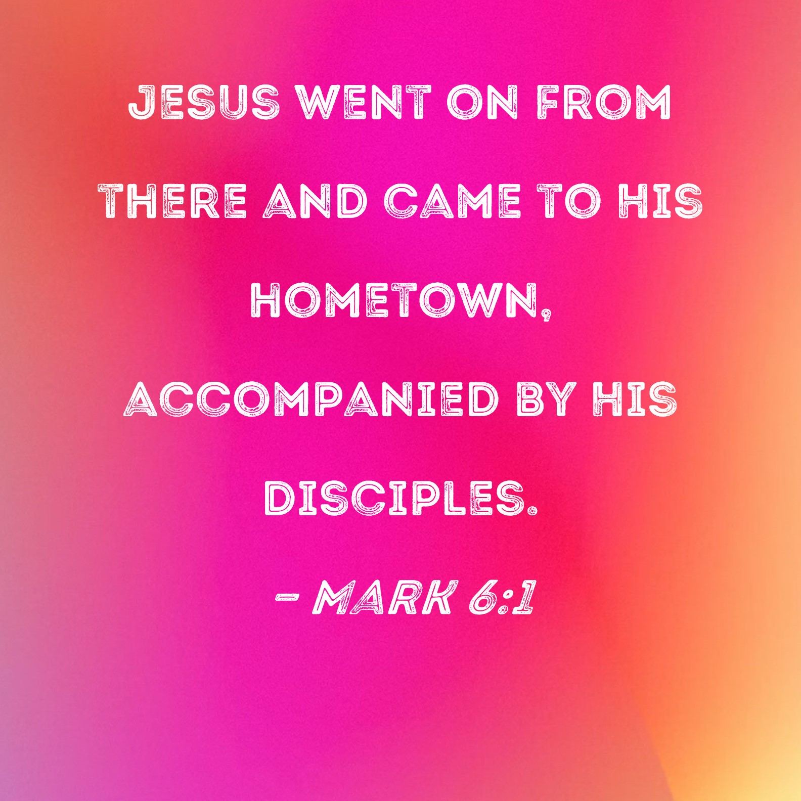 Mark 6:1 Jesus went on from there and came to His hometown, accompanied by His disciples.