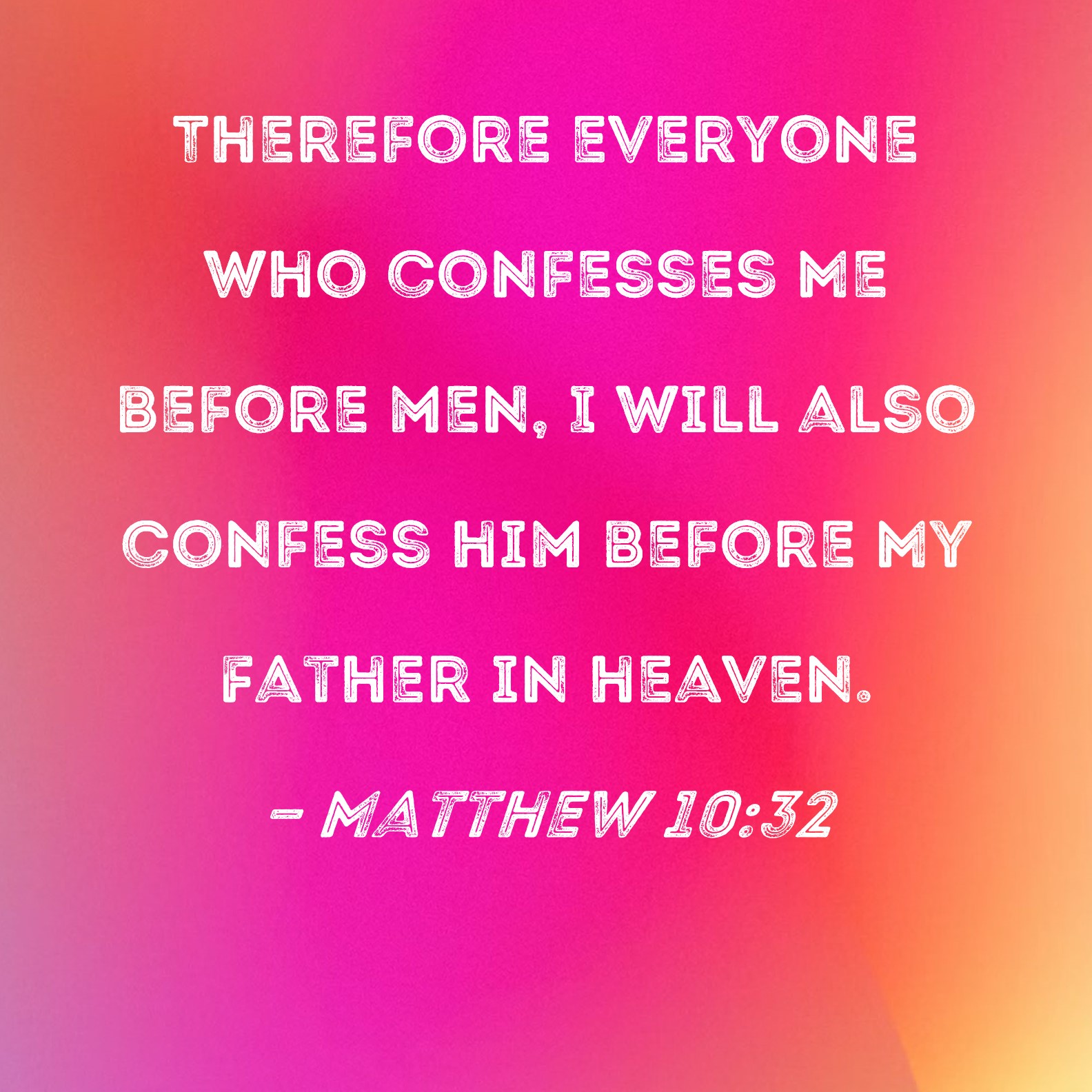 Matthew 10:32 Therefore everyone who confesses Me before men, I will also confess him before My Father in heaven.