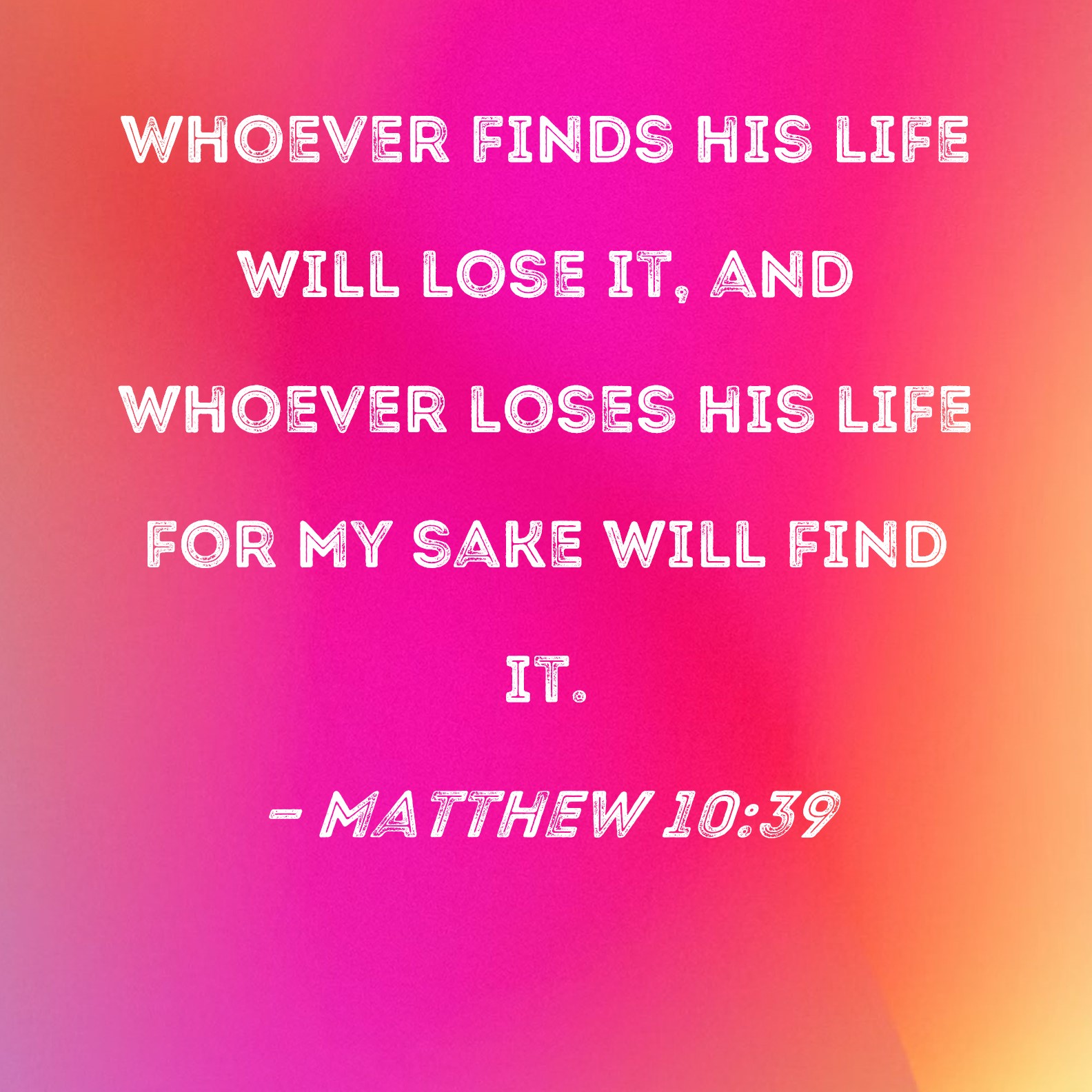 Matthew 10:39 Whoever finds his life will lose it, and whoever loses his life for My sake will find it.