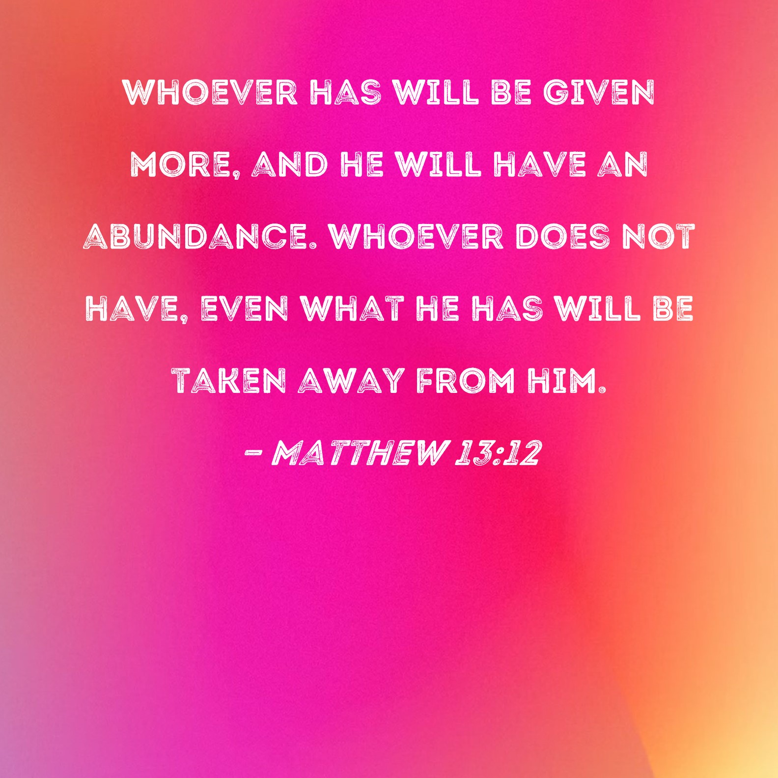 Matthew 13:12 Whoever has will be given more, and he will have an abundance. Whoever does not have, even what he has will be taken away from him.