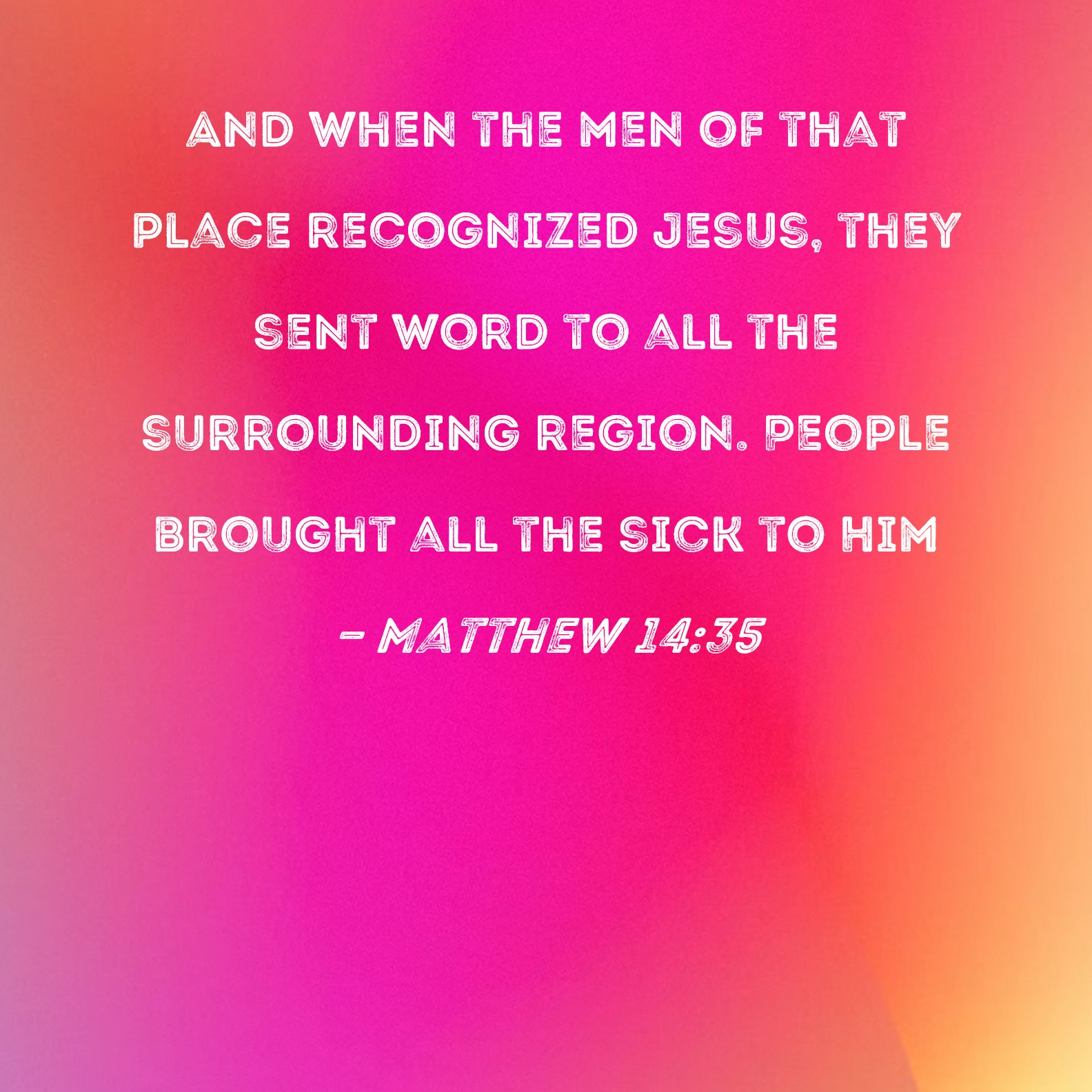 Matthew 14:35 And when the men of that place recognized Jesus, they sent word to all the surrounding region. People brought all the sick to Him