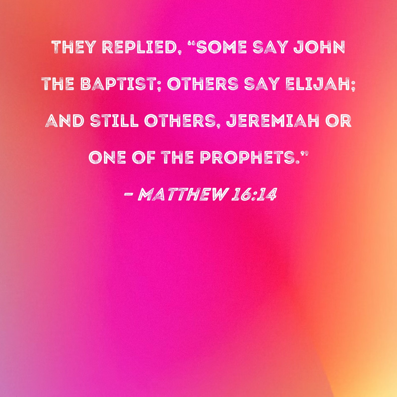 Matthew 16:14 They replied, "Some say John the Baptist; others say Elijah; and still others, Jeremiah or one of the prophets."