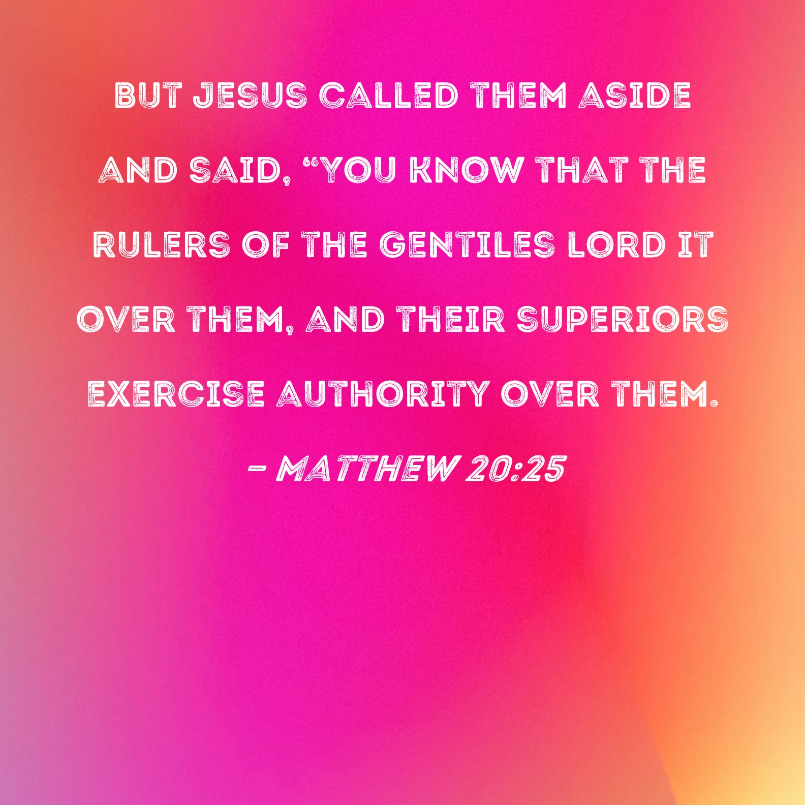 Matthew 20:25 But Jesus called them aside and said, "You know that the rulers of the Gentiles lord it over them, and their superiors exercise authority over them.