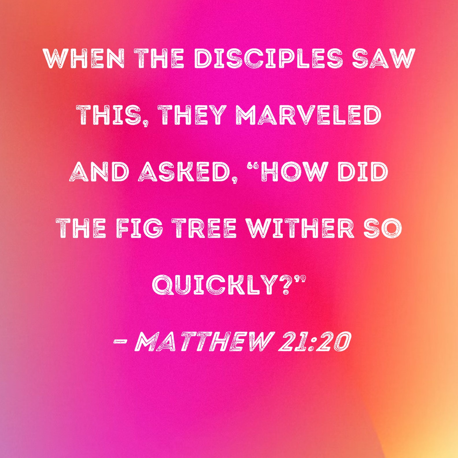 Matthew 21:20 When the disciples saw this, they marveled and asked, "How did the fig tree wither so quickly?"