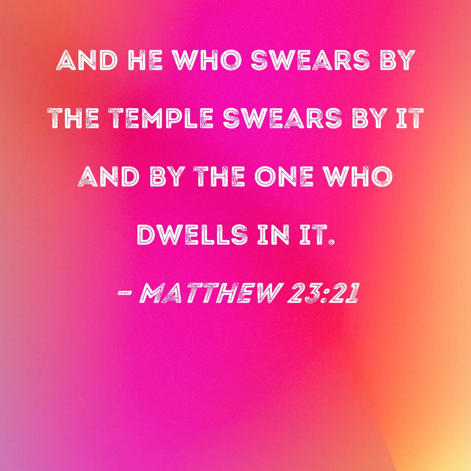 Matthew 23:21 And he who swears by the temple swears by it and by the One who dwells in it.