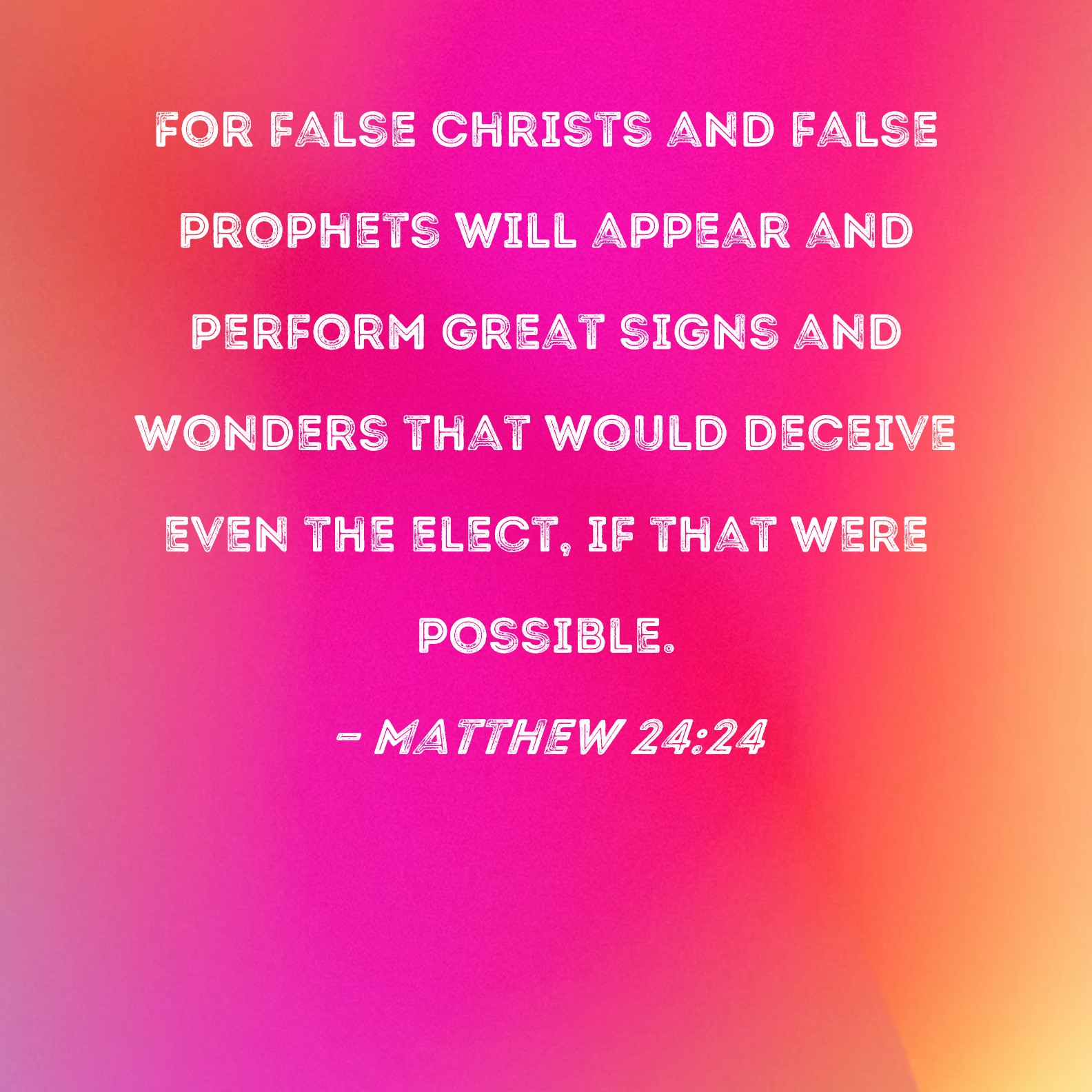 Matthew 24:24 For false Christs and false prophets will appear and perform great signs and wonders that would deceive even the elect, if that were possible.