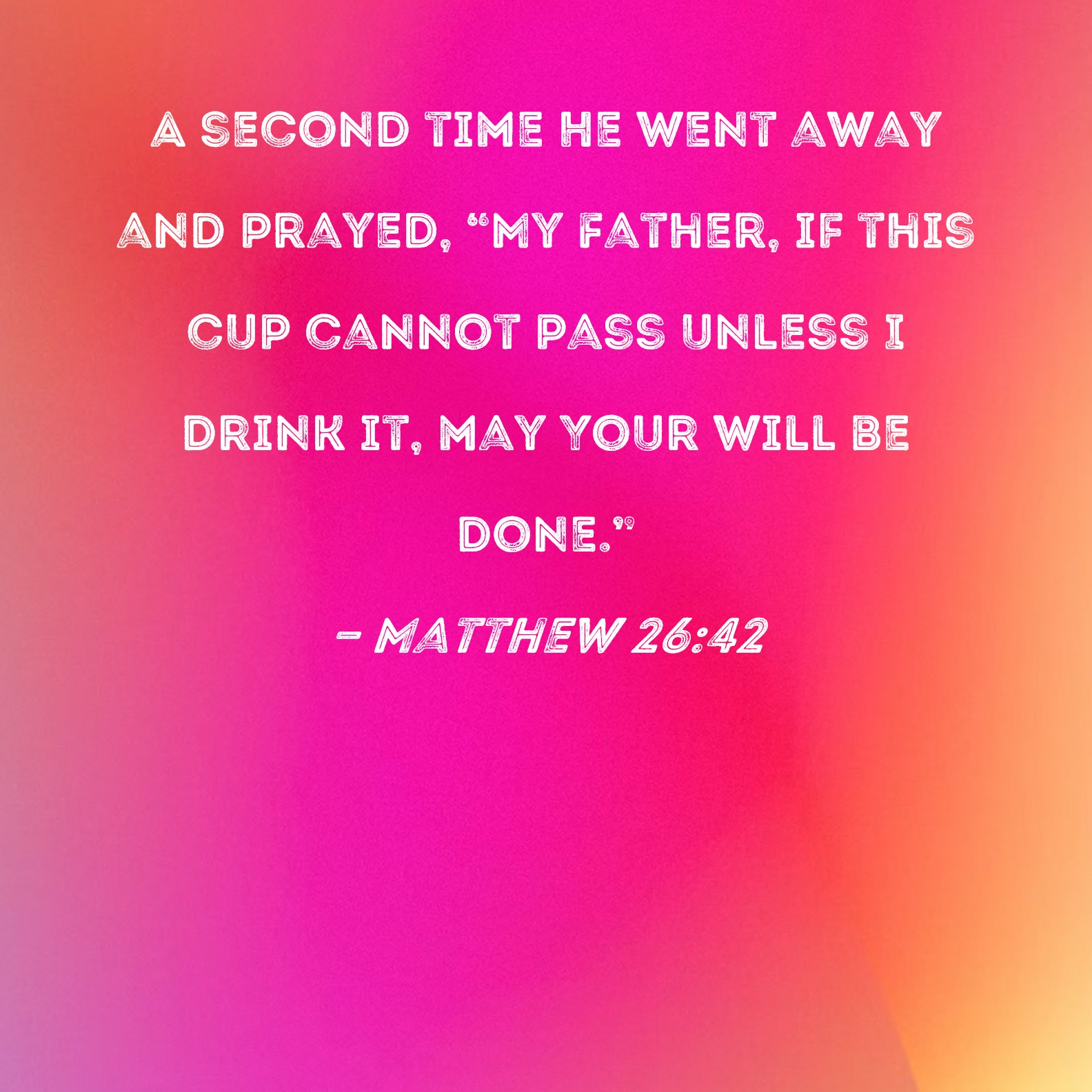 Matthew 26:42 A second time He went away and prayed, "My Father, if this cup cannot pass unless I drink it, may Your will be done."