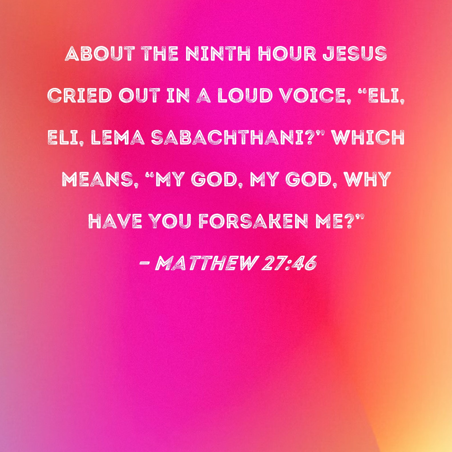 Matthew 27:46 About the ninth hour Jesus cried out in a loud voice, "Eli, Eli, lema sabachthani?" which means, "My God, My God, why have You forsaken Me?"