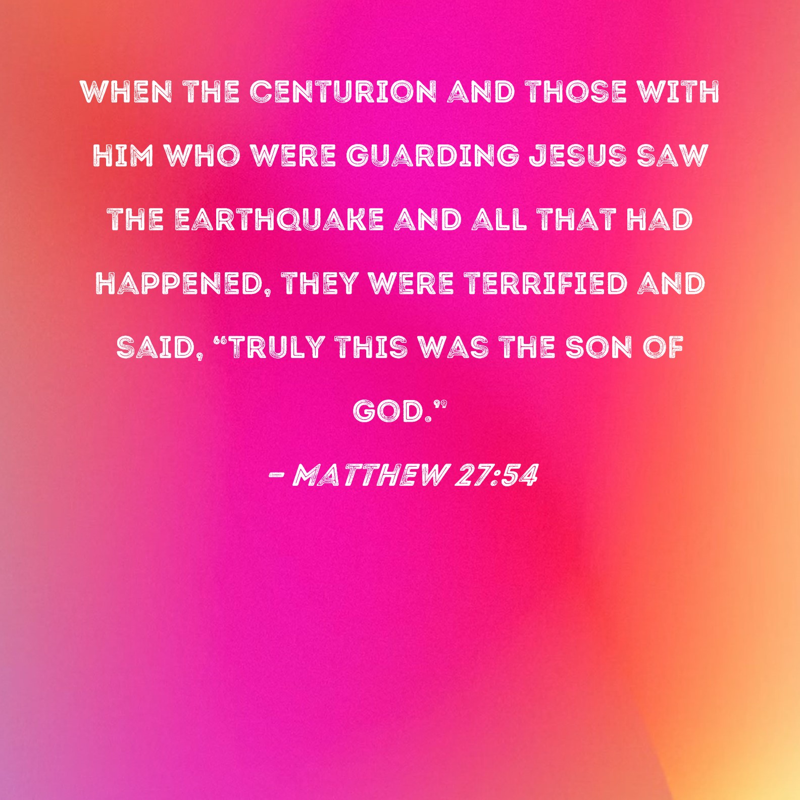 Matthew 27:54 When the centurion and those with him who were guarding Jesus saw the earthquake and all that had happened, they were terrified and said, "Truly this was the Son of God."
