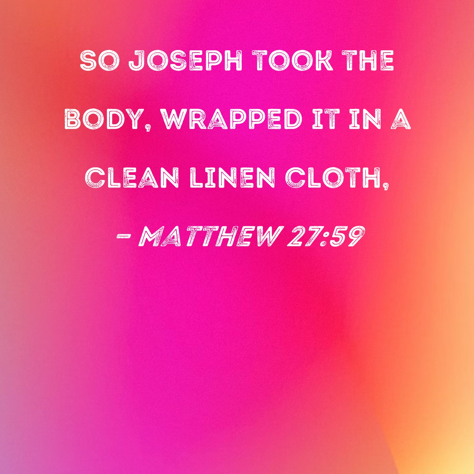 Matthew 27:59 So Joseph took the body, wrapped it in a clean linen cloth,