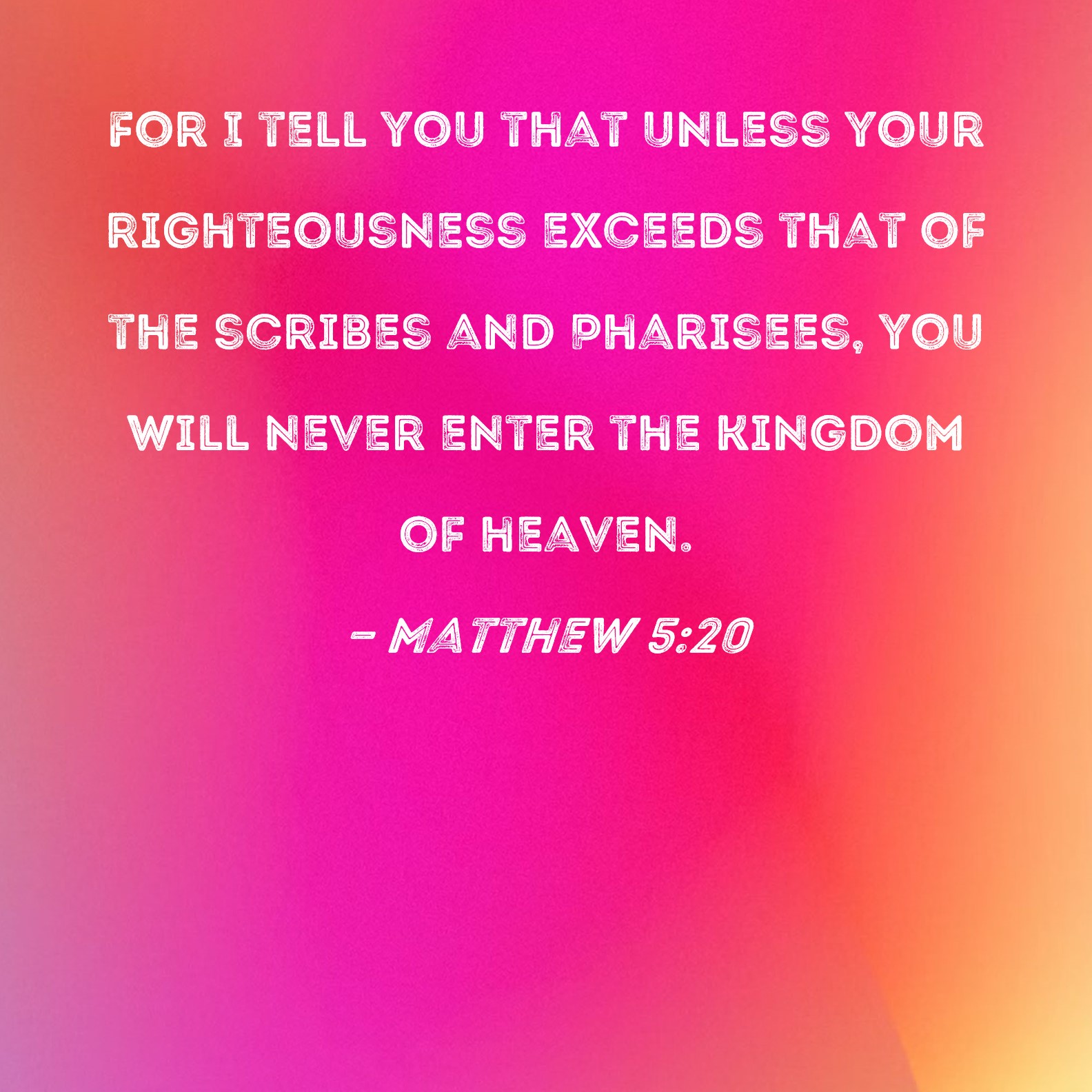 Matthew 5:20 For I tell you that unless your righteousness exceeds that of the scribes and Pharisees, you will never enter the kingdom of heaven.
