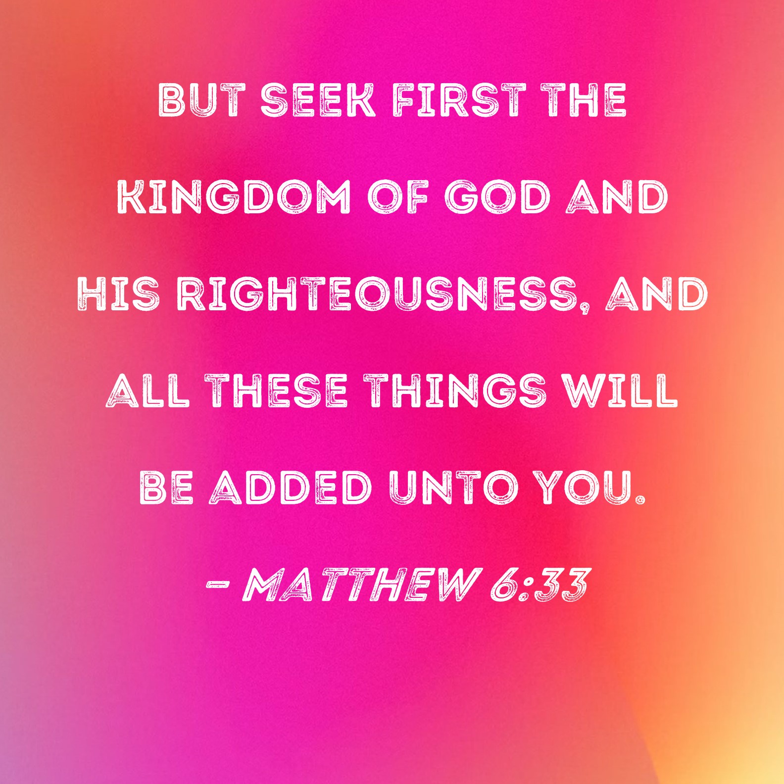 Matthew 6:33 But seek first the kingdom of God and His righteousness, and all these things will be added unto you.