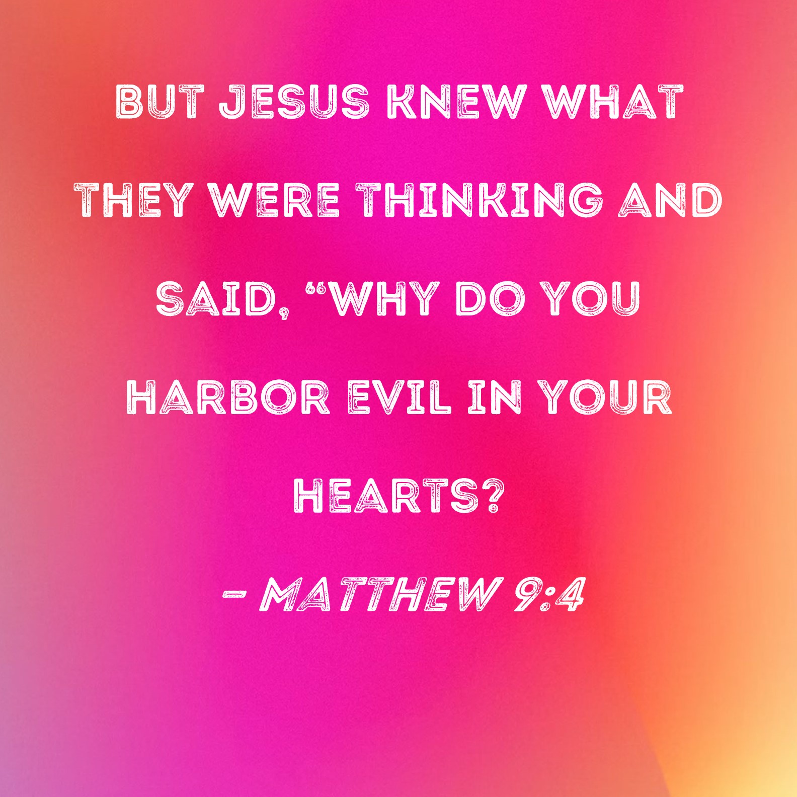 Matthew 9:4 But Jesus knew what they were thinking and said, "Why do you harbor evil in your hearts?
