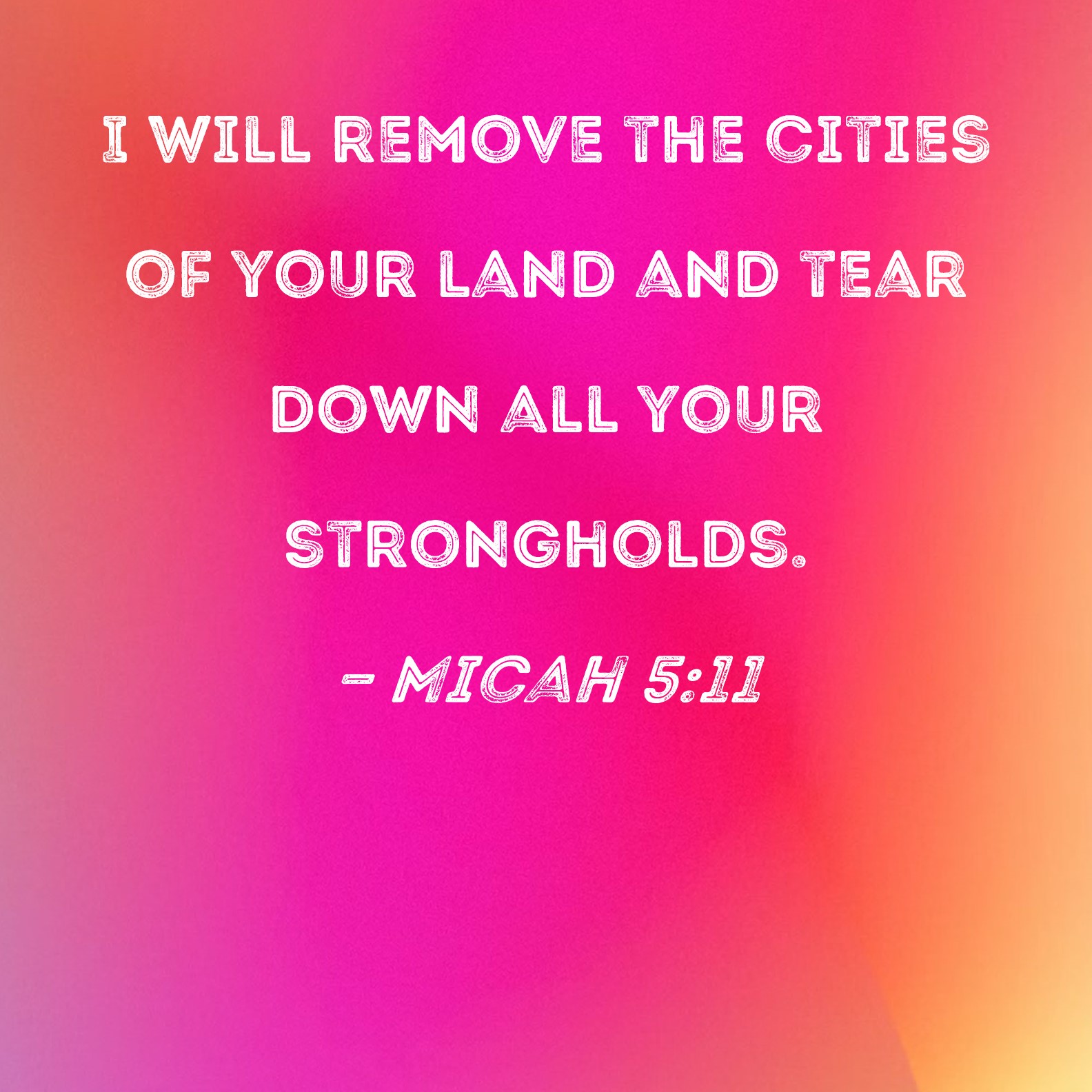 Micah 5:11 I will remove the cities of your land and tear down all your strongholds.
