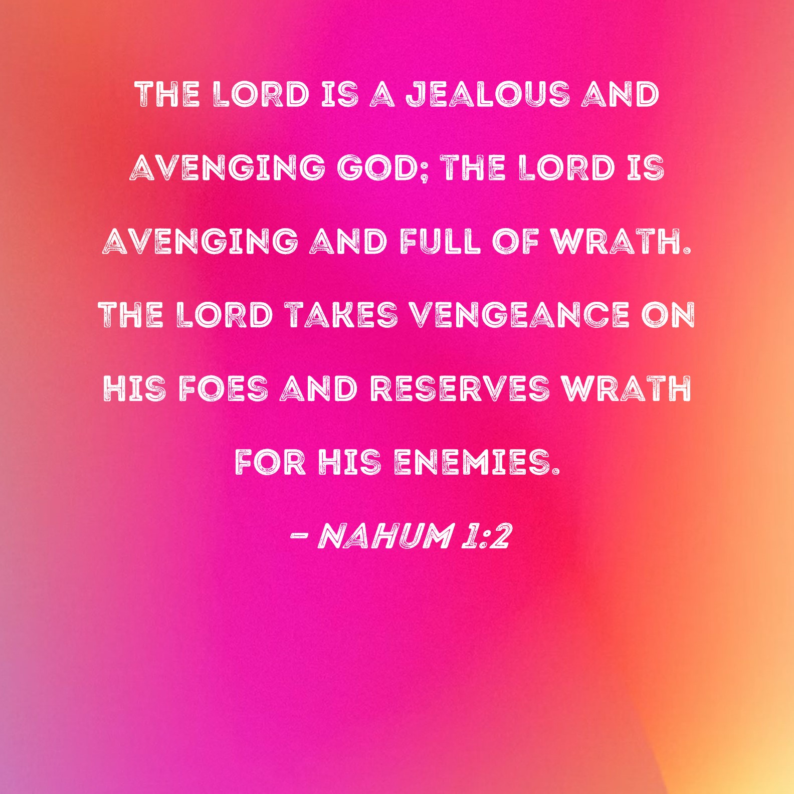 Nahum 1:2 The LORD is a jealous and avenging God; the LORD is avenging and full of wrath. The LORD takes vengeance on His foes and reserves wrath for His enemies.