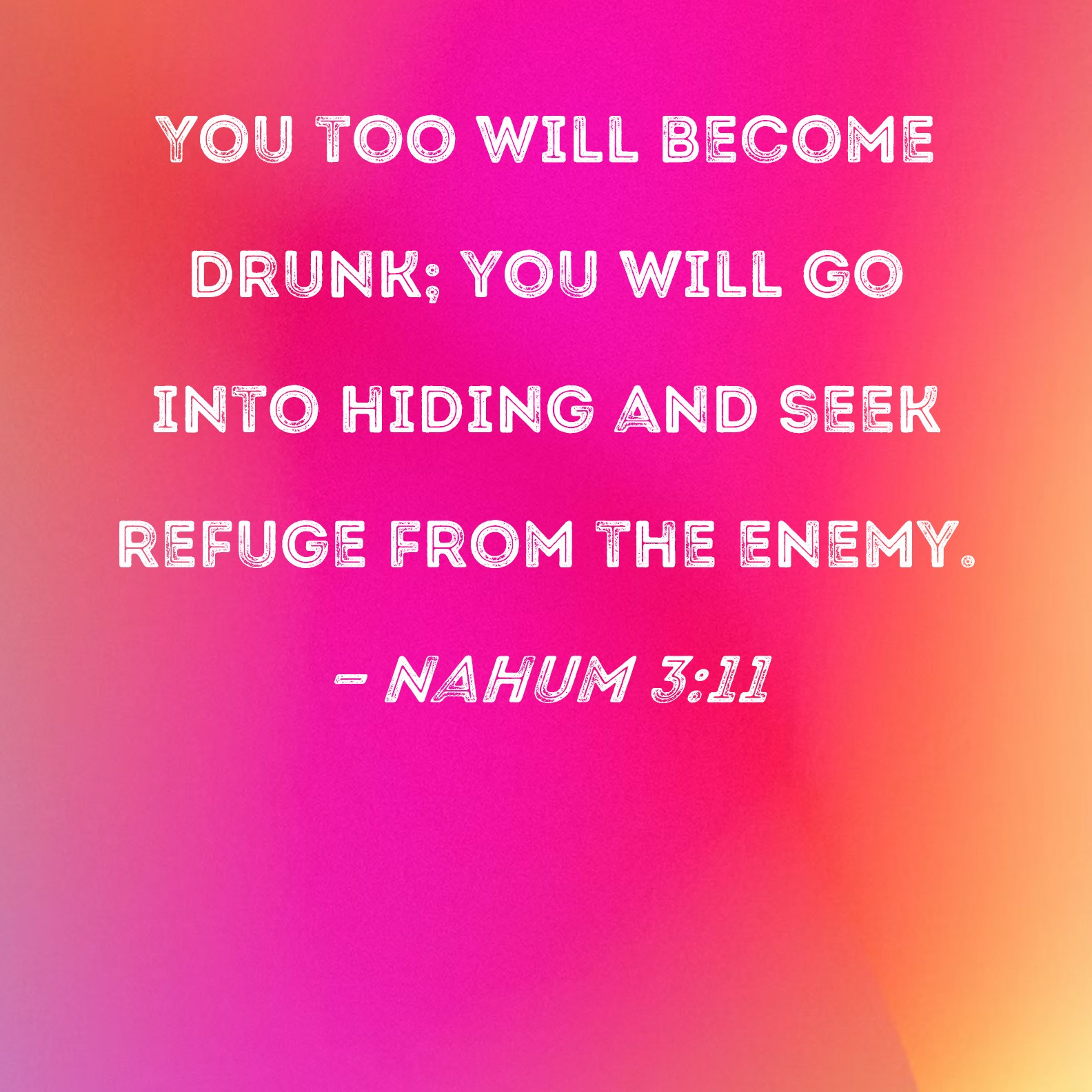 Nahum 3:11 You too will become drunk; you will go into hiding and seek refuge from the enemy.