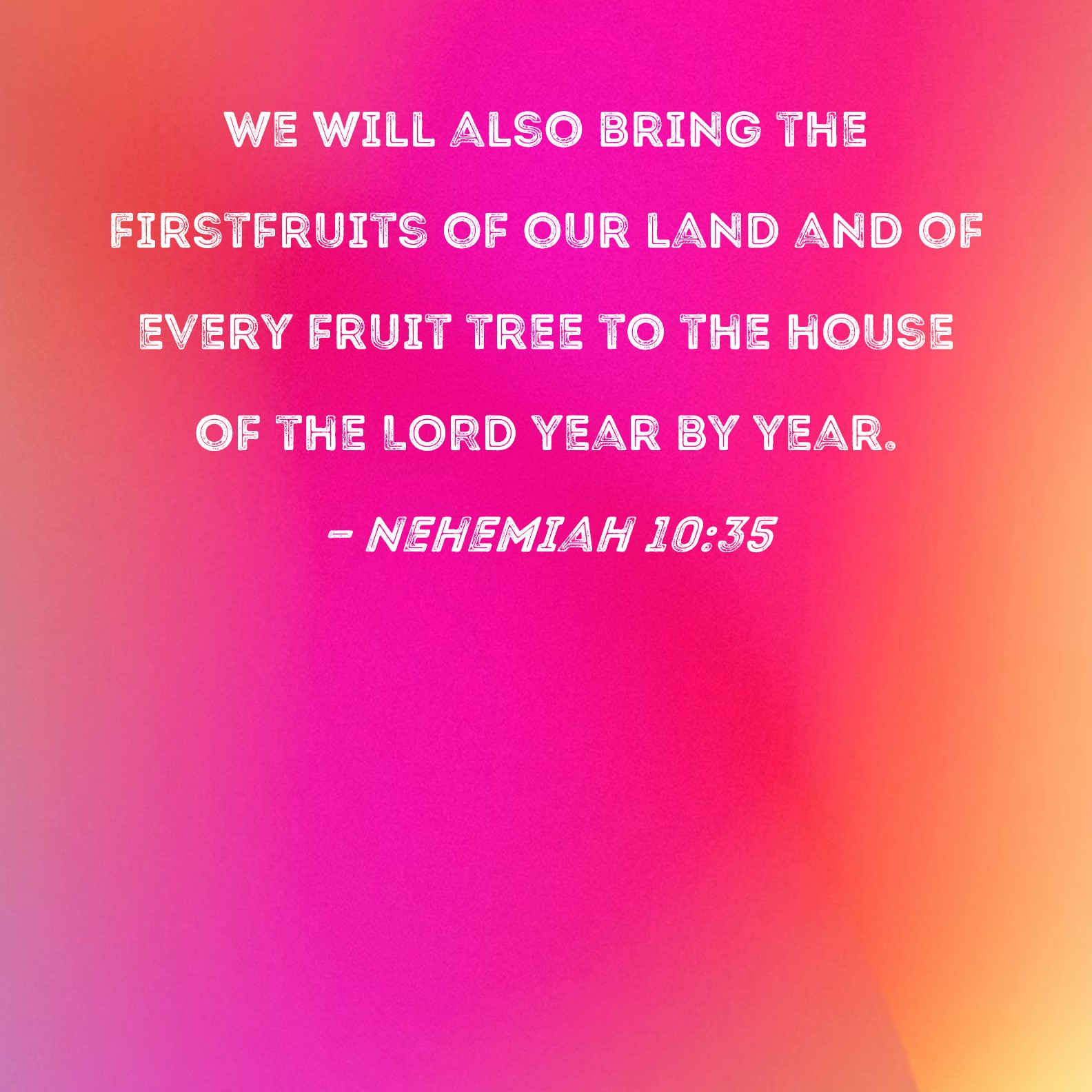 Nehemiah 10:35 We will also bring the firstfruits of our land and of every fruit tree to the house of the LORD year by year.