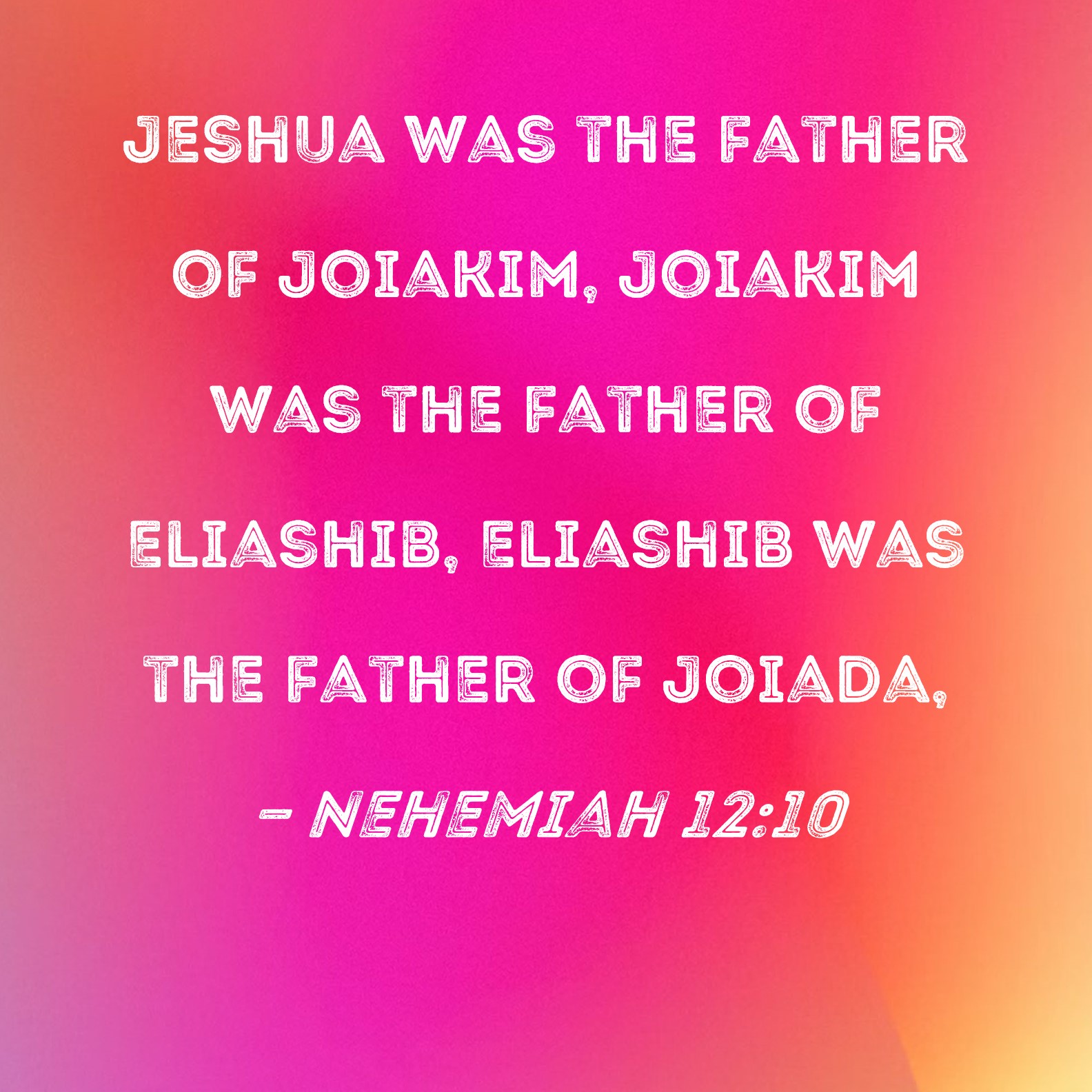 Nehemiah 12:10 Jeshua was the father of Joiakim, Joiakim was the father of Eliashib, Eliashib was the father of Joiada,