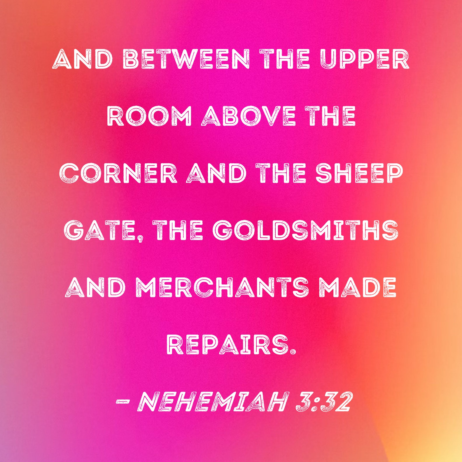 Nehemiah 3:32 And between the upper room above the corner and the Sheep Gate, the goldsmiths and merchants made repairs.
