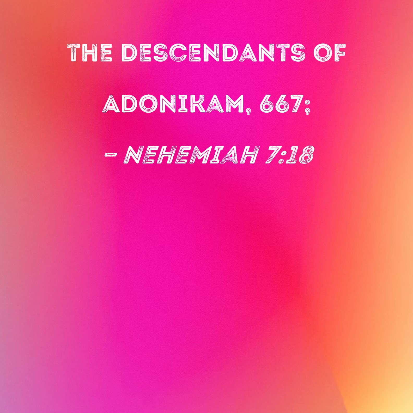 Nehemiah 7:18 the descendants of Adonikam, 667;