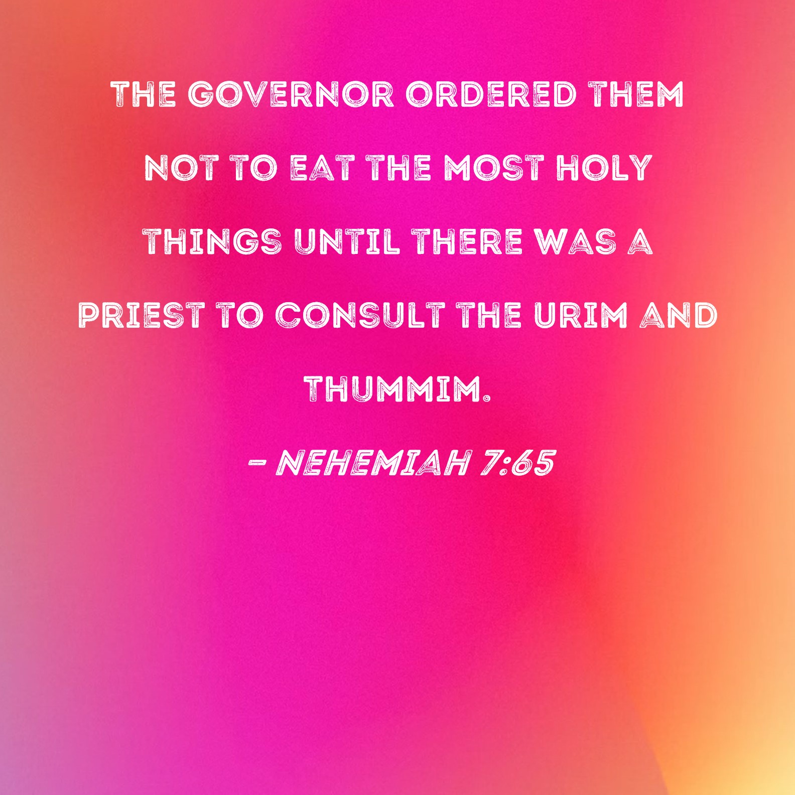 Nehemiah 7:65 The governor ordered them not to eat the most holy things until there was a priest to consult the Urim and Thummim.