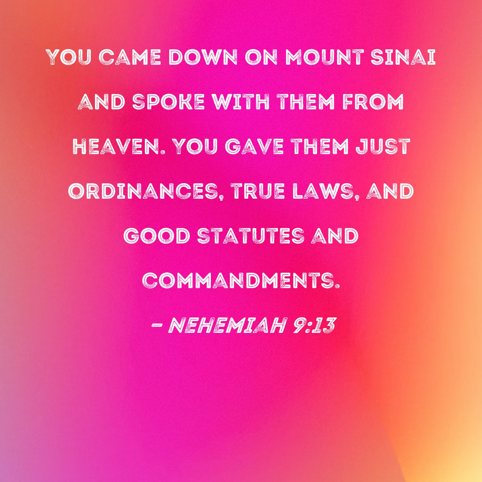 Nehemiah 9:13 You came down on Mount Sinai and spoke with them from heaven. You gave them just ordinances, true laws, and good statutes and commandments.
